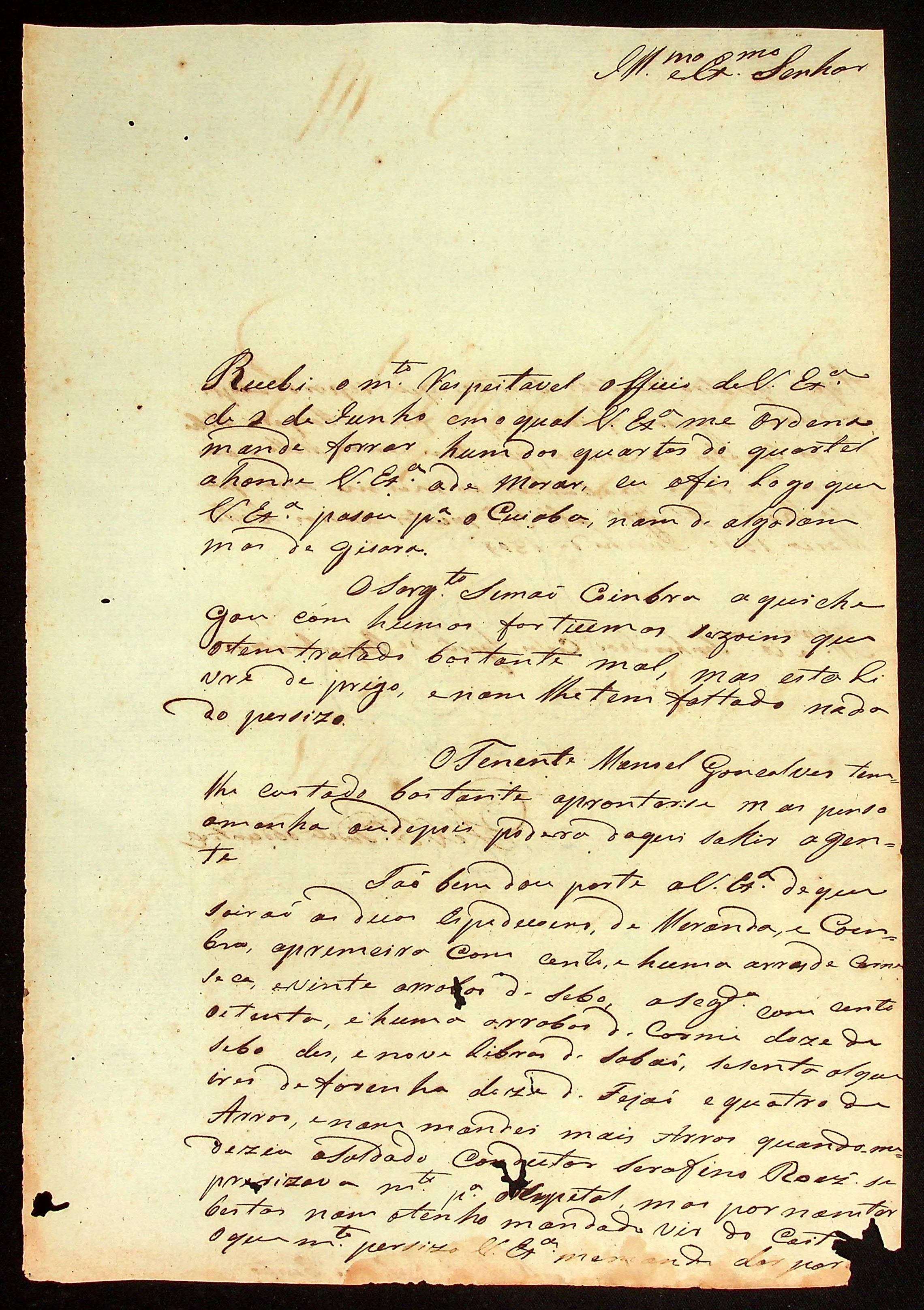 CARTA do [Comandante de Vila Maria] Manoel Antônio Pinto ao [Governador e Capitão-General da Capitania de Mato Grosso] João Carlos Augusto d’Oeynhausen e Gravenberg.