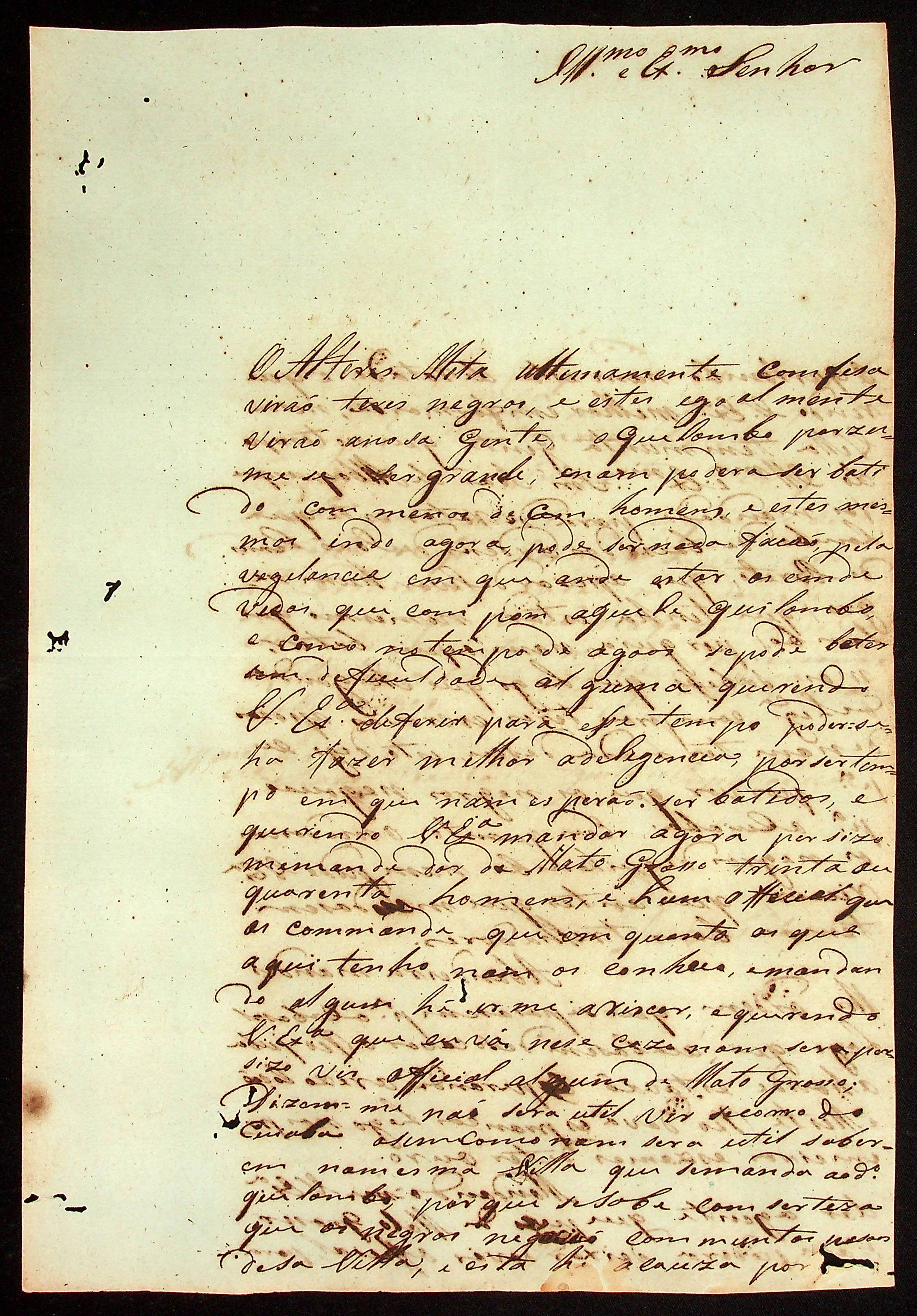 CARTA do [Comandante de Vila Maria] Manoel Antônio Pinto ao [Governador e Capitão-General da Capitania de Mato Grosso] João Carlos Augusto d’Oeynhausen e Gravenberg.