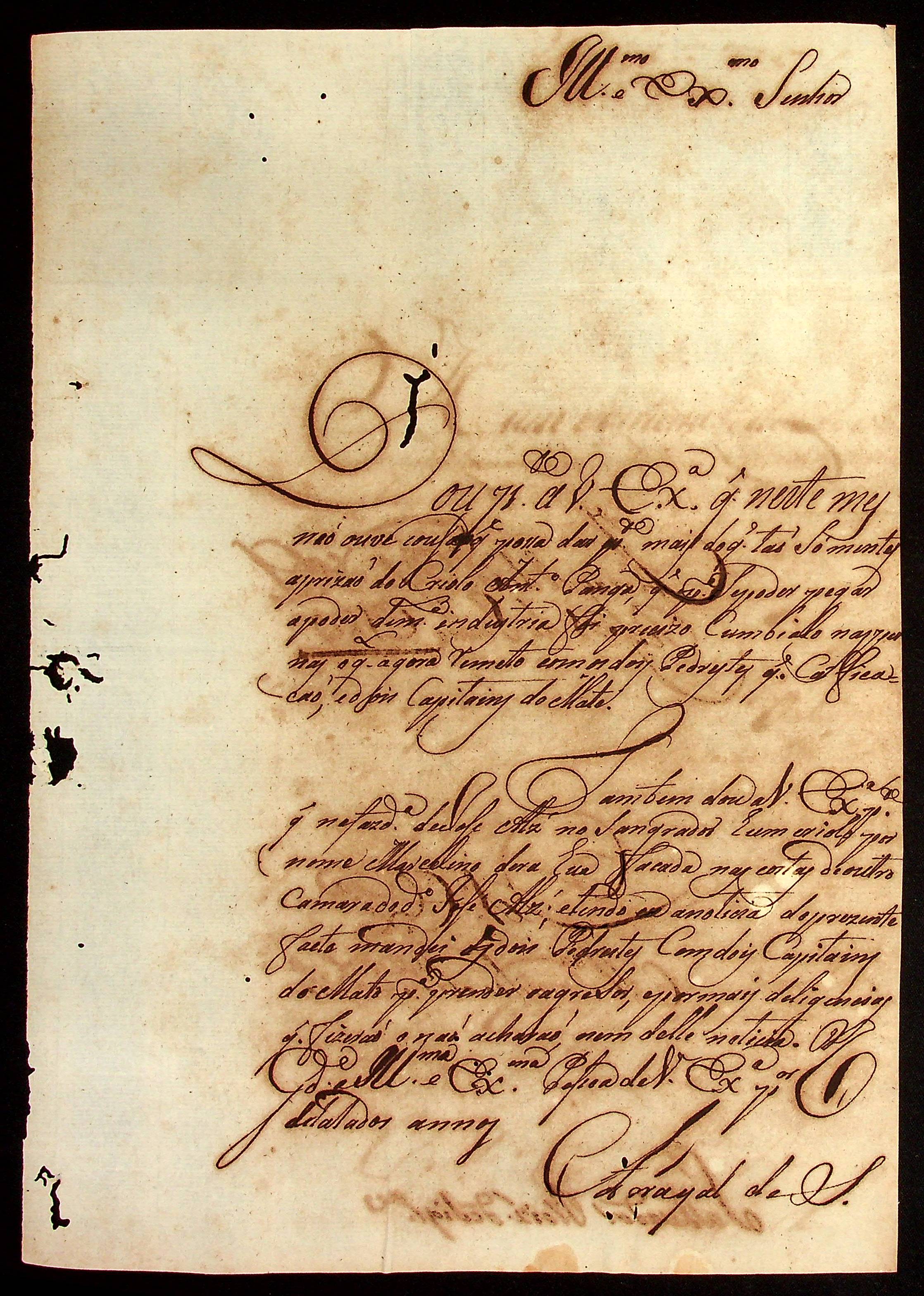 CARTA do [Tenente Comandante] Salvador Rodrigues de Siqueira ao [Governador e Capitão-General da Capitania de Mato Grosso] João Carlos Augusto d’Oeynhausen e Gravenberg.