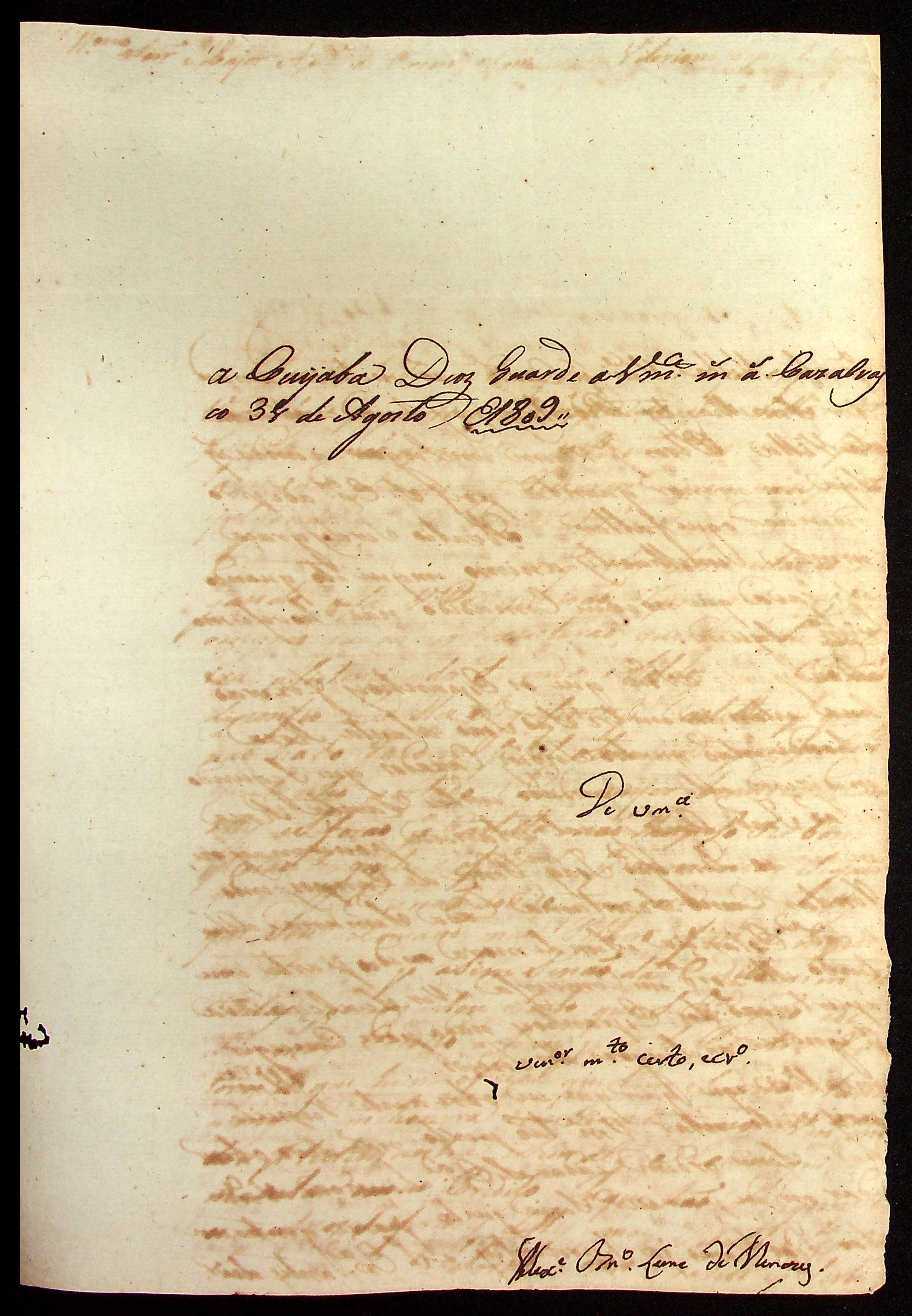 CARTA de Alexandre Brito Leme de Meneses ao [Governador e Capitão-General da Capitania de Mato Grosso] João Carlos Augusto d’Oeynhausen e Gravenberg.