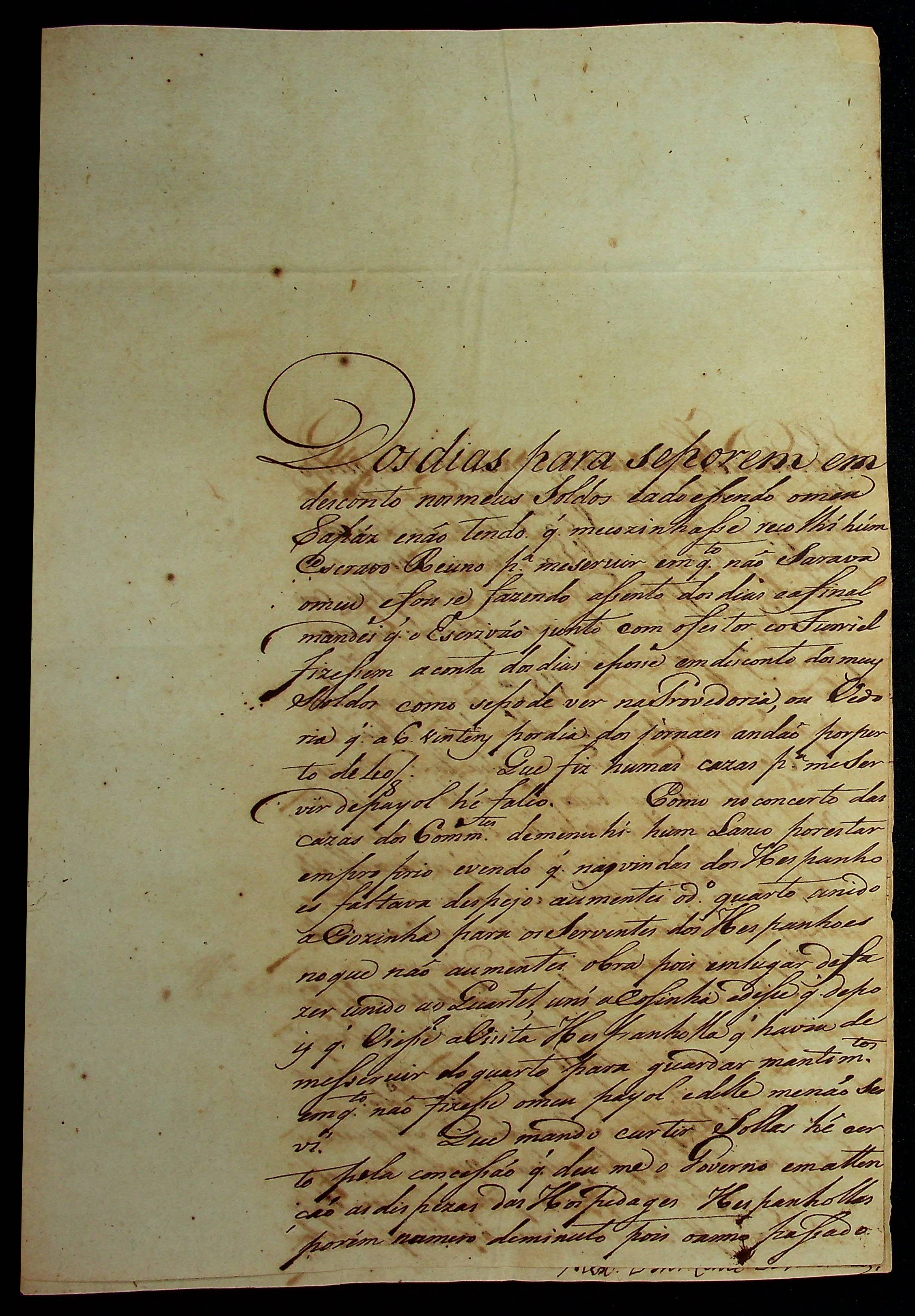 CARTA de Alexandre Brito Leme de Meneses ao [Governador e Capitão-General da Capitania de Mato Grosso João] Carlos Augusto d’Oeynhausen e Gravenberg.