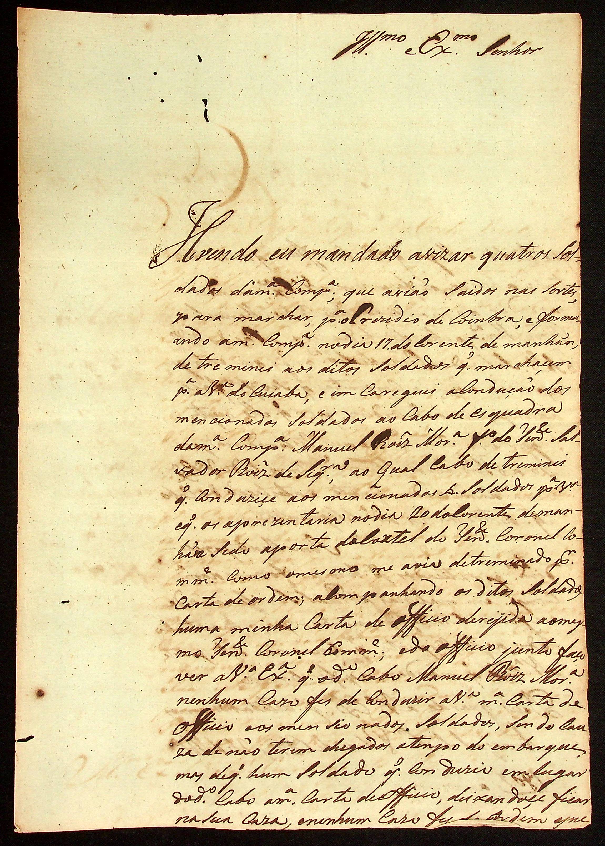 CARTA do [Capitão da 4ª Companhia] Francisco de Paula Nunes ao [Governador e Capitão-General da Capitania de Mato Grosso] João Carlos Augusto d’Oeynhausen e Gravenberg.