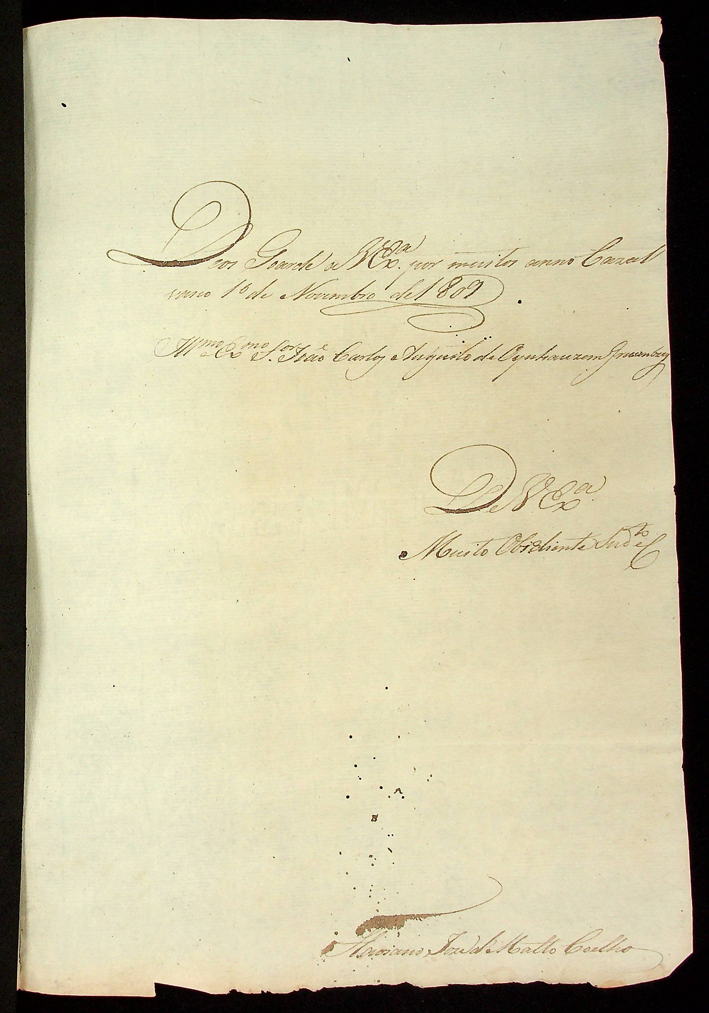 CARTA do [Comandante] Flaviano José de Matos Coelho ao [Governador e Capitão-General da Capitania de Mato Grosso] João Carlos Augusto d’Oeynhausen e Gravenberg.