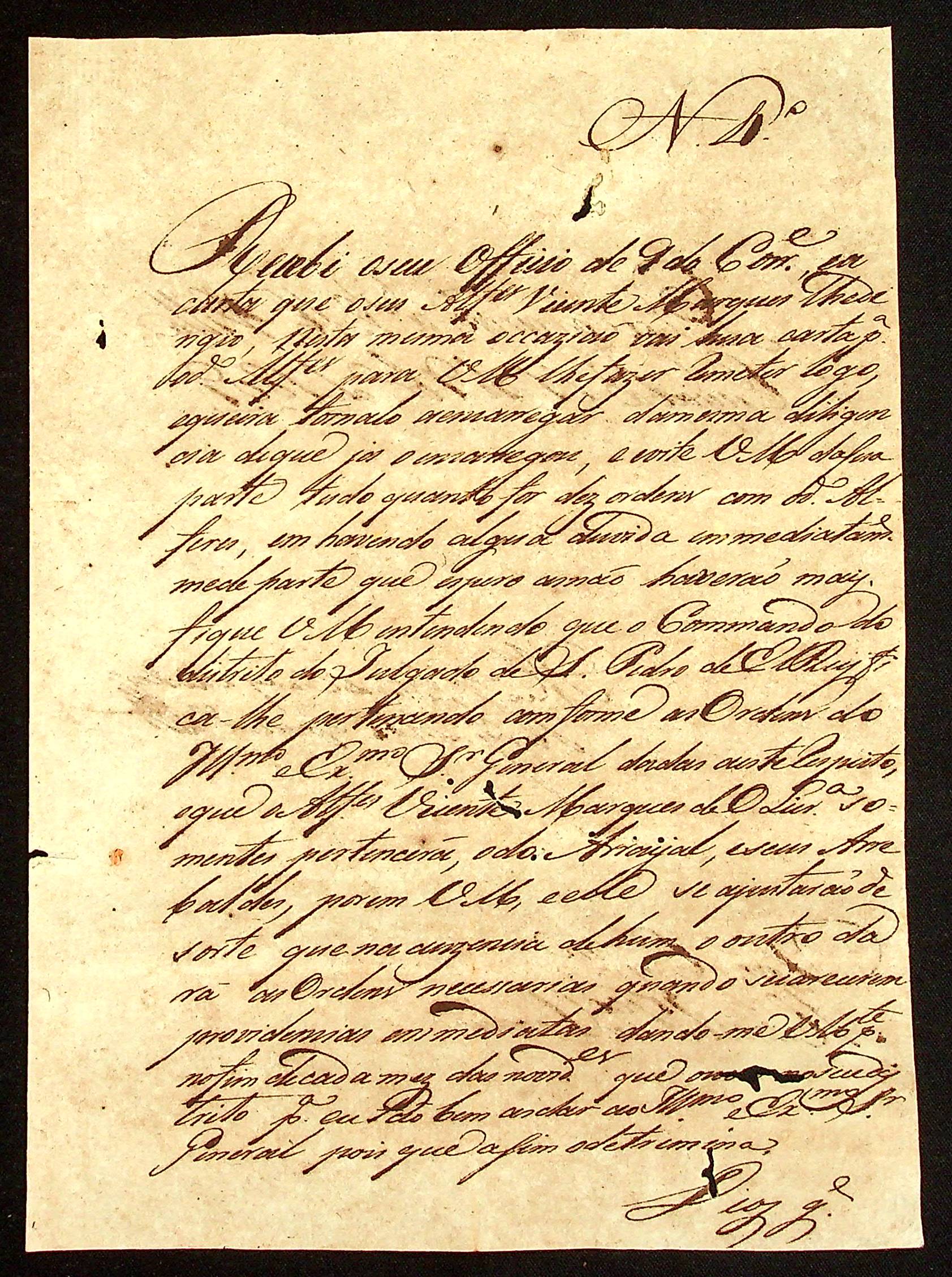 CARTA do Capitão Comandante da 2ª Companhia Manoel Francisco Rondon ao Alferes Comandante Vicente Marques de Oliveira.