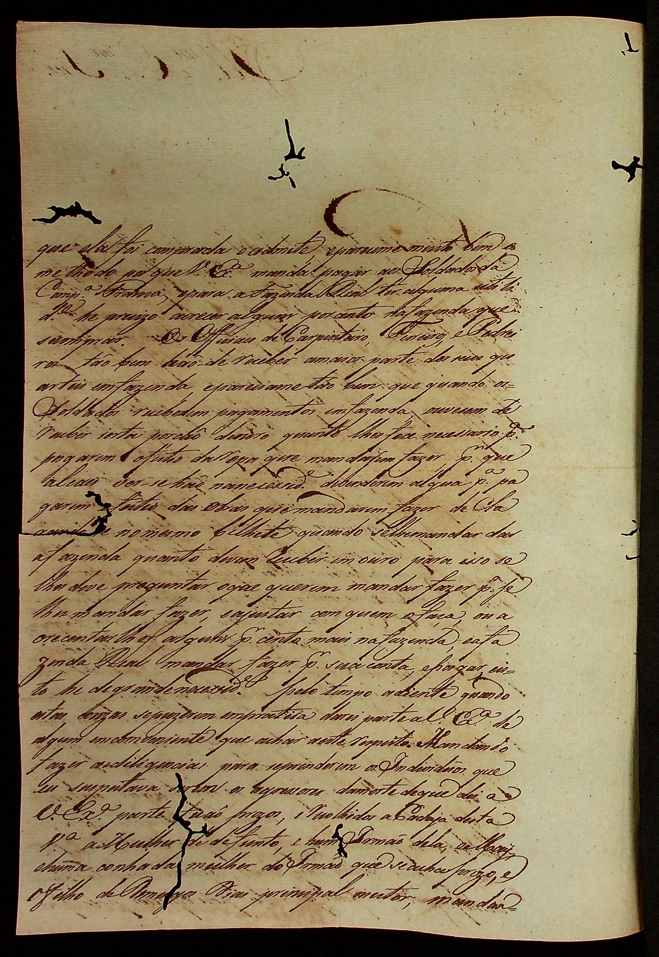 CARTA do ao [Sargento-mor Comandante e Ajudante de Ordens] Alexandre José Leite de Chaves Melo ao [Governador e Capitão-General da Capitania de Mato Grosso] João Carlos Augusto d’Oeynhausen e Gravenberg.