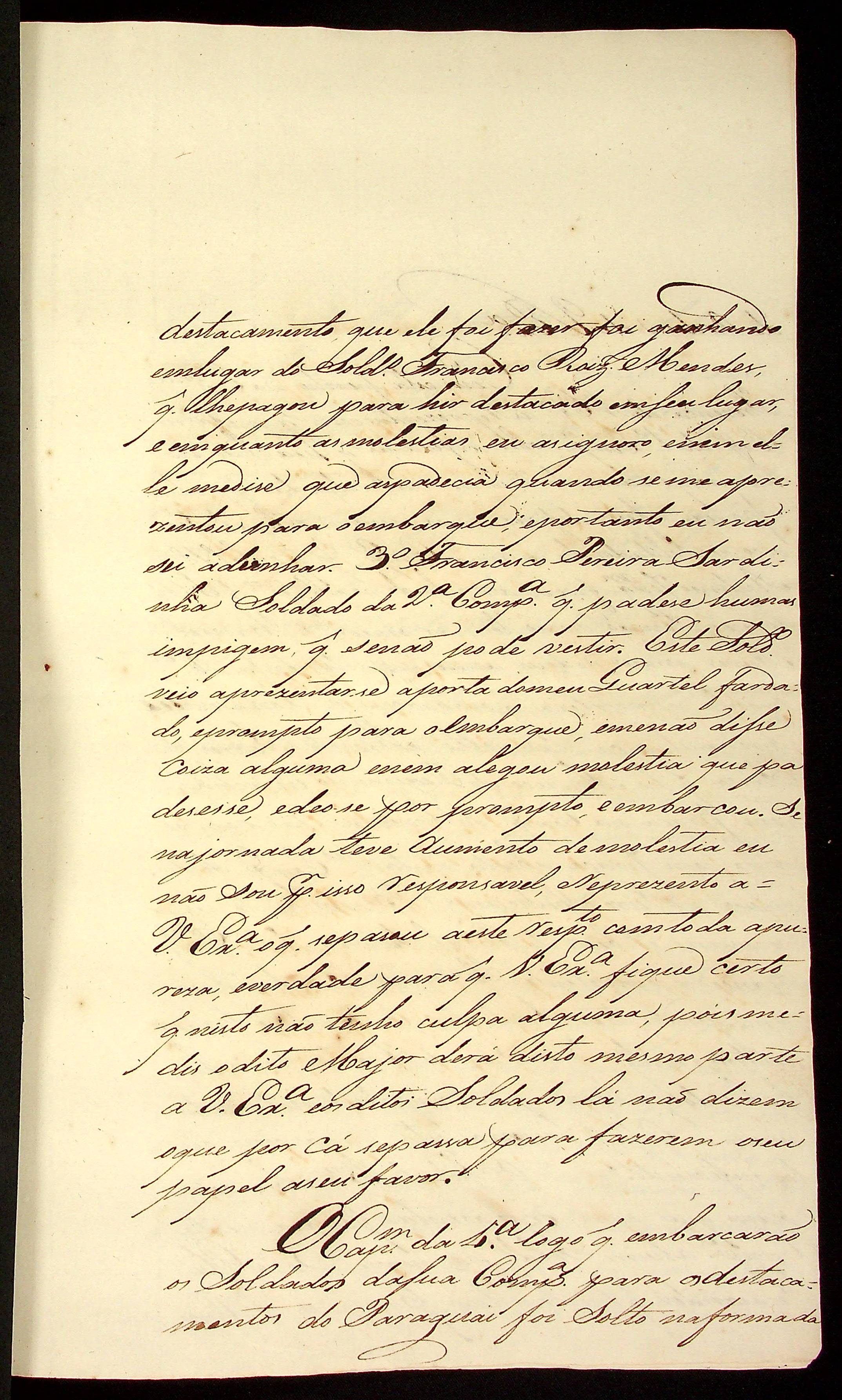 CARTA do [Tenente-Coronel] Gabriel de Fonseca Souza ao [Governador e Capitão-General da Capitania de Mato Grosso] João Carlos Augusto d’Oeynhausen e Gravenberg.