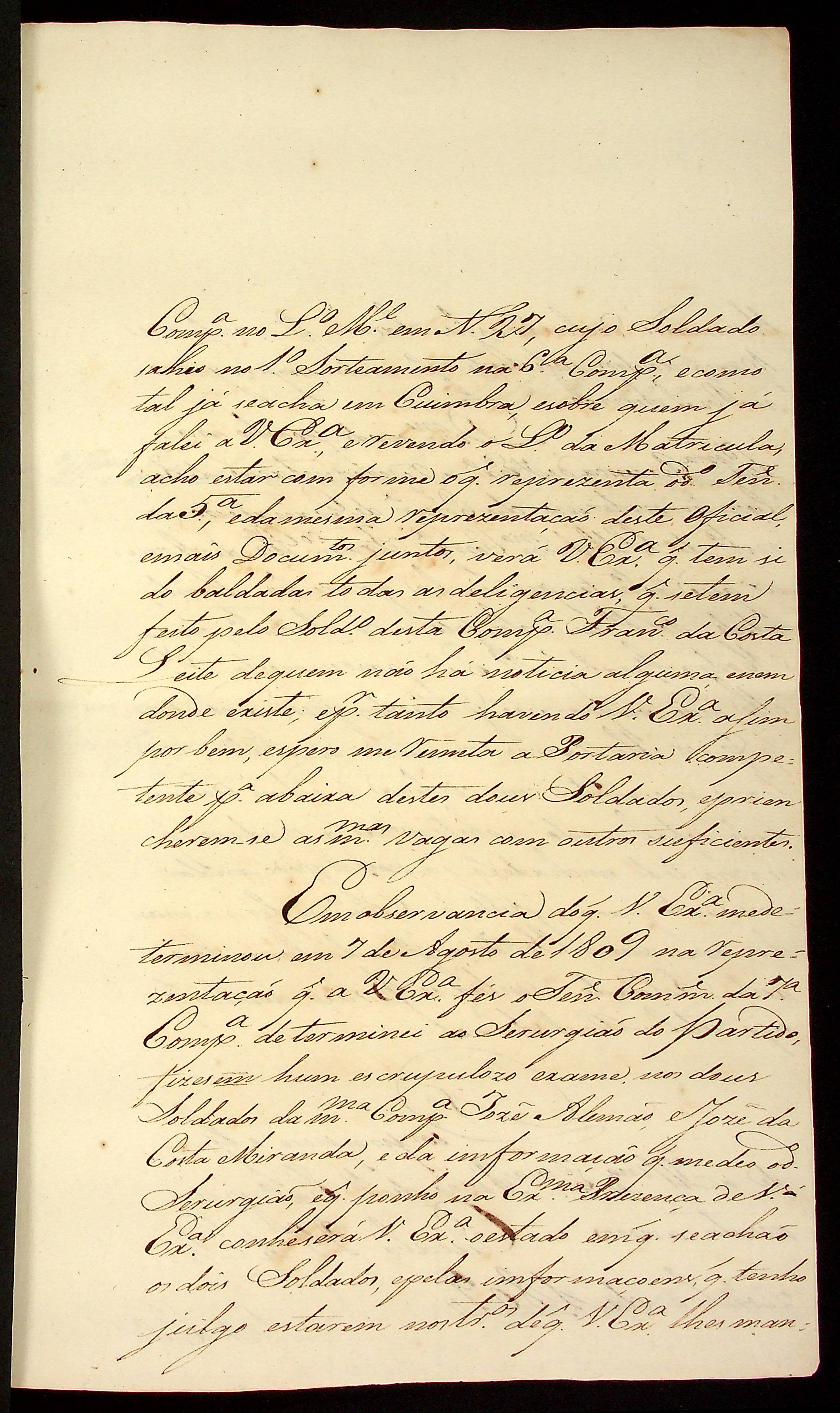 CARTA do [Tenente-Coronel] Gabriel de Fonseca Souza ao [Governador e Capitão-General da Capitania de Mato Grosso] João Carlos Augusto d’Oeynhausen e Gravenberg.