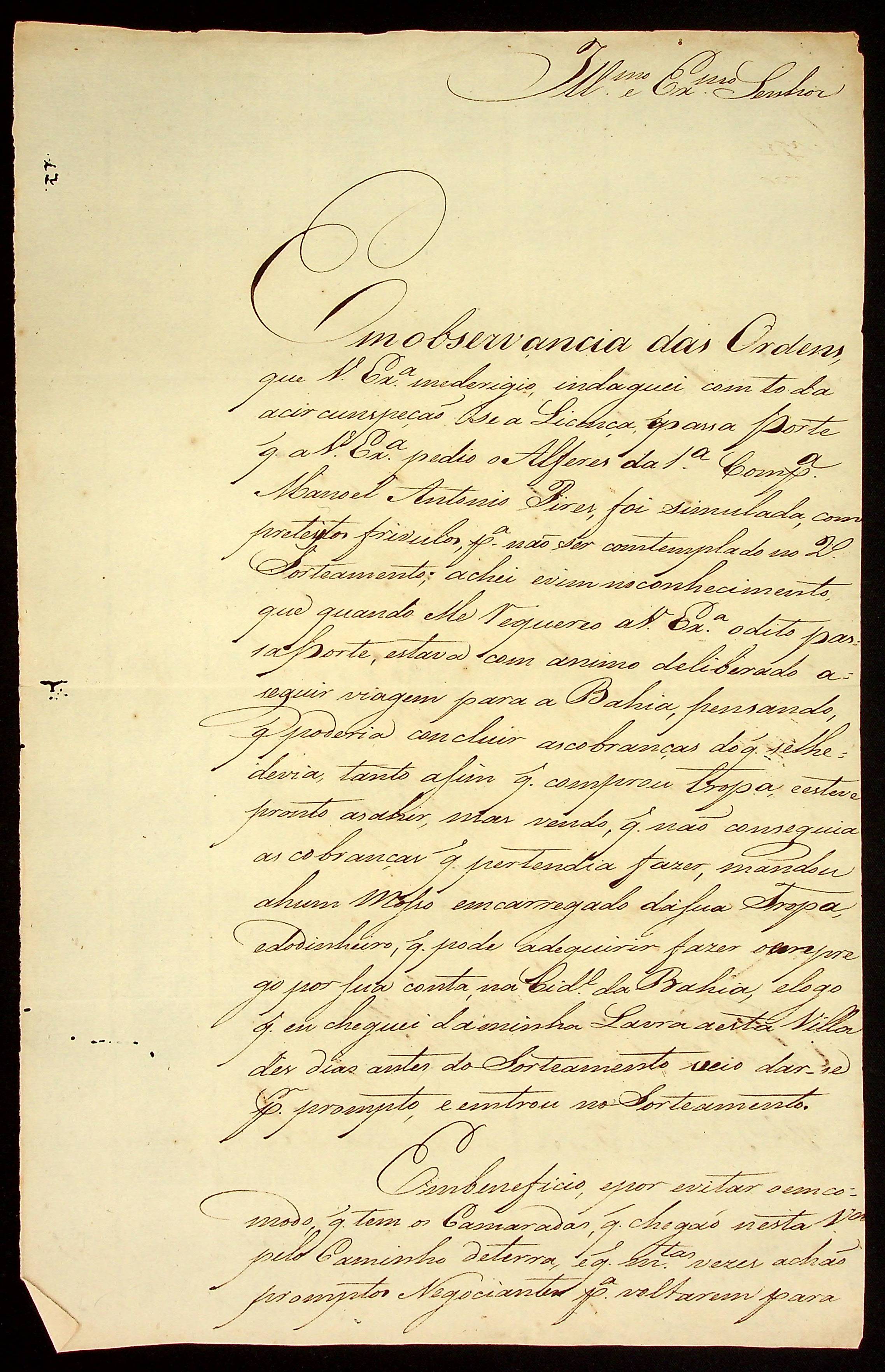 CARTA do [Tenente-Coronel] Gabriel de Fonseca Souza ao [Governador e Capitão-General da Capitania de Mato Grosso] João Carlos Augusto d’Oeynhausen e Gravenberg.