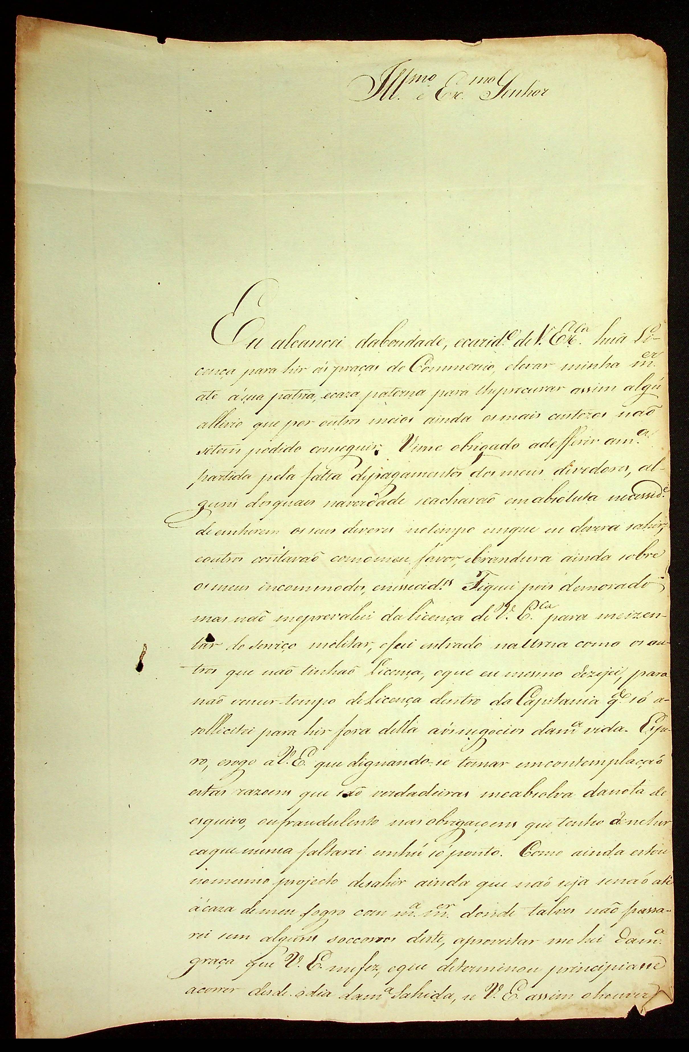CARTA de Manoel Dias Gonçalves ao [Governador e Capitão-General da Capitania de Mato Grosso] João Carlos Augusto d’Oeynhausen e Gravenberg.