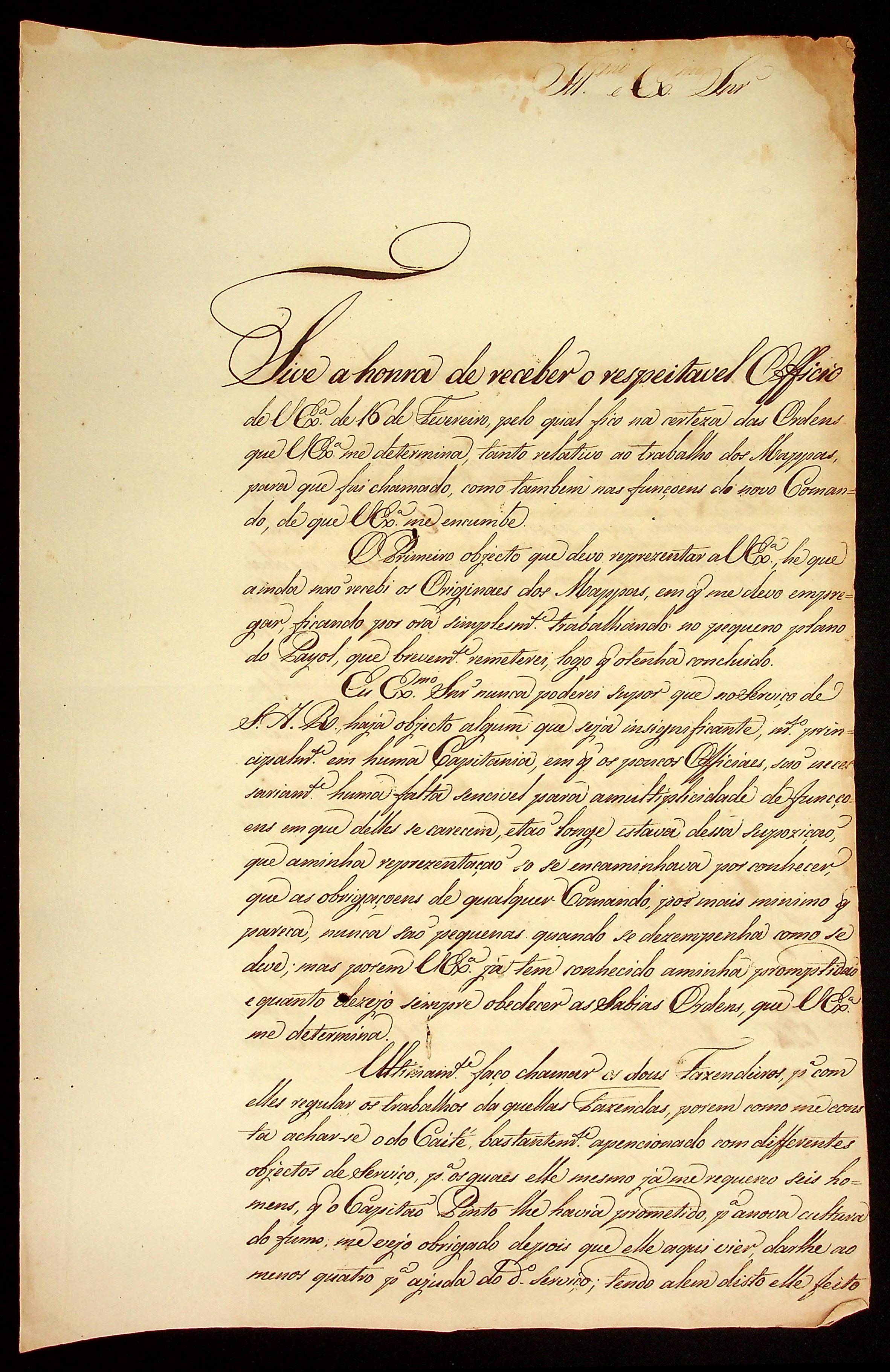 CARTA de Antônio José Rodrigues ao [Governador e Capitão-General da Capitania de Mato Grosso] João Carlos Augusto d’Oeynhausen e Gravenberg.