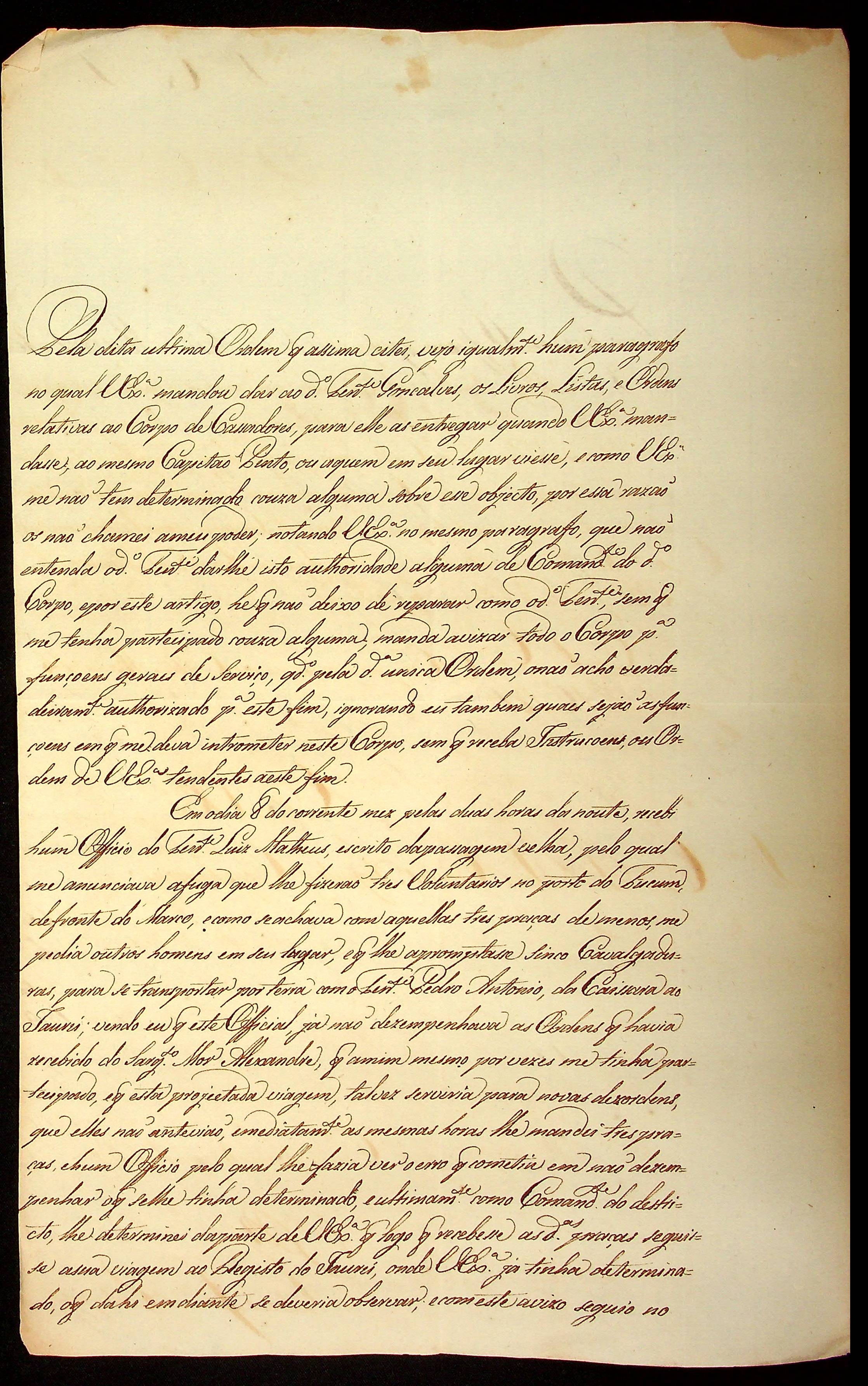CARTA do Antônio José Rodrigues ao [Governador e Capitão-General da Capitania de Mato Grosso] João Carlos Augusto d’Oeynhausen e Gravenberg.