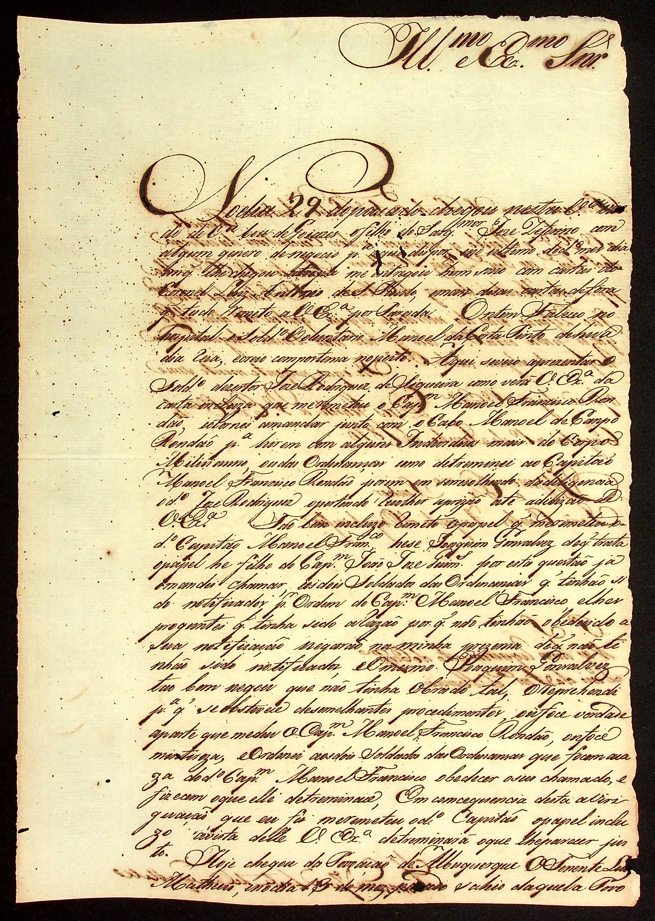 CARTA do [Sargento-mor Ajudante de Ordens] Alexandre José Leite de Chaves Melo ao [Governador e Capitão General da Capitania de Mato Grosso] João Carlos Augusto d’Oeynhausen e Gravenberg.