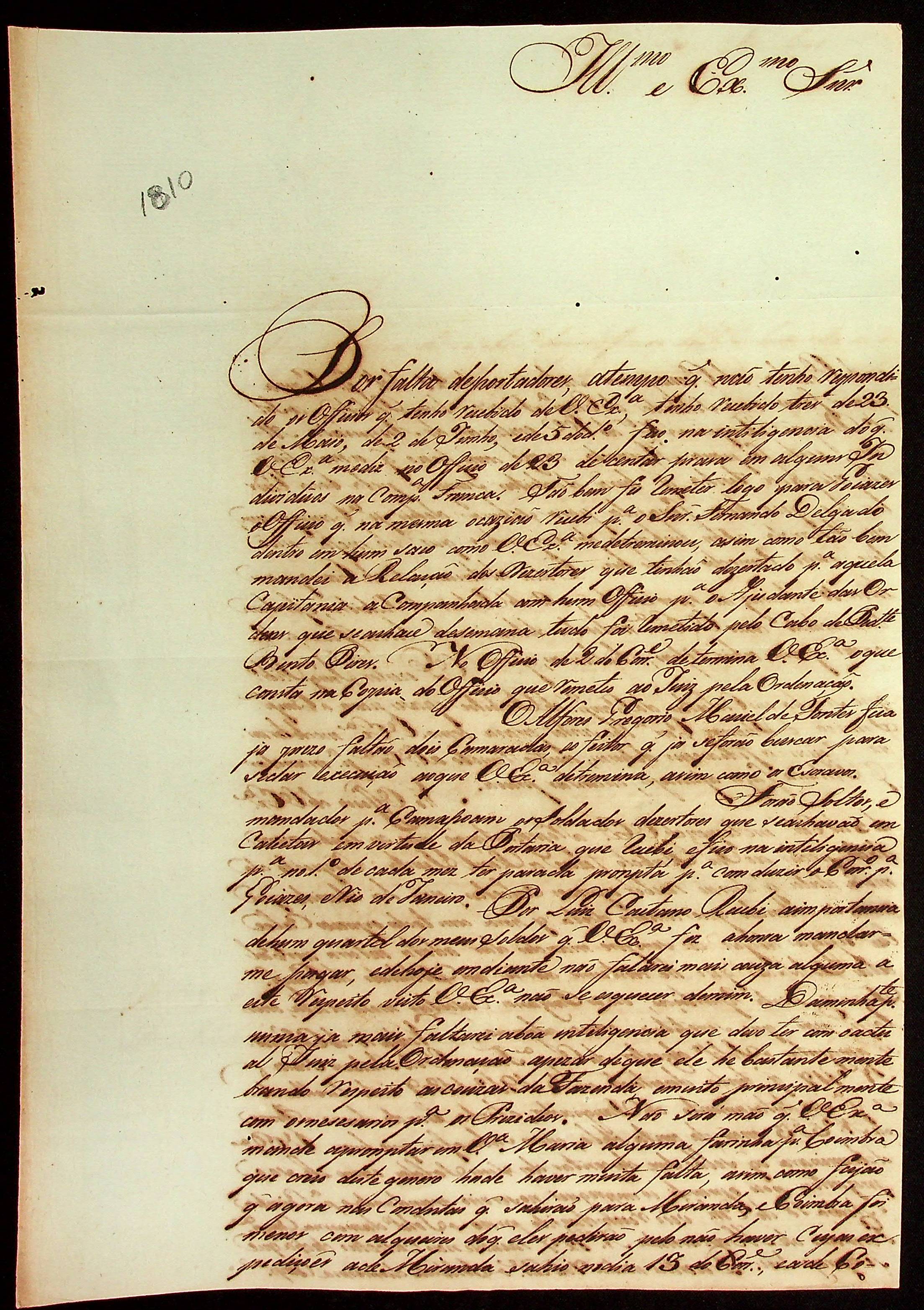 CARTA do [Sargento-mor Ajudante de ordens] Alexandre José Leite Chaves de Melo ao [Governador e Capitão-General da Capitania de Mato Grosso] João Carlos Augusto d’Oeynhausen e Gravenberg.
