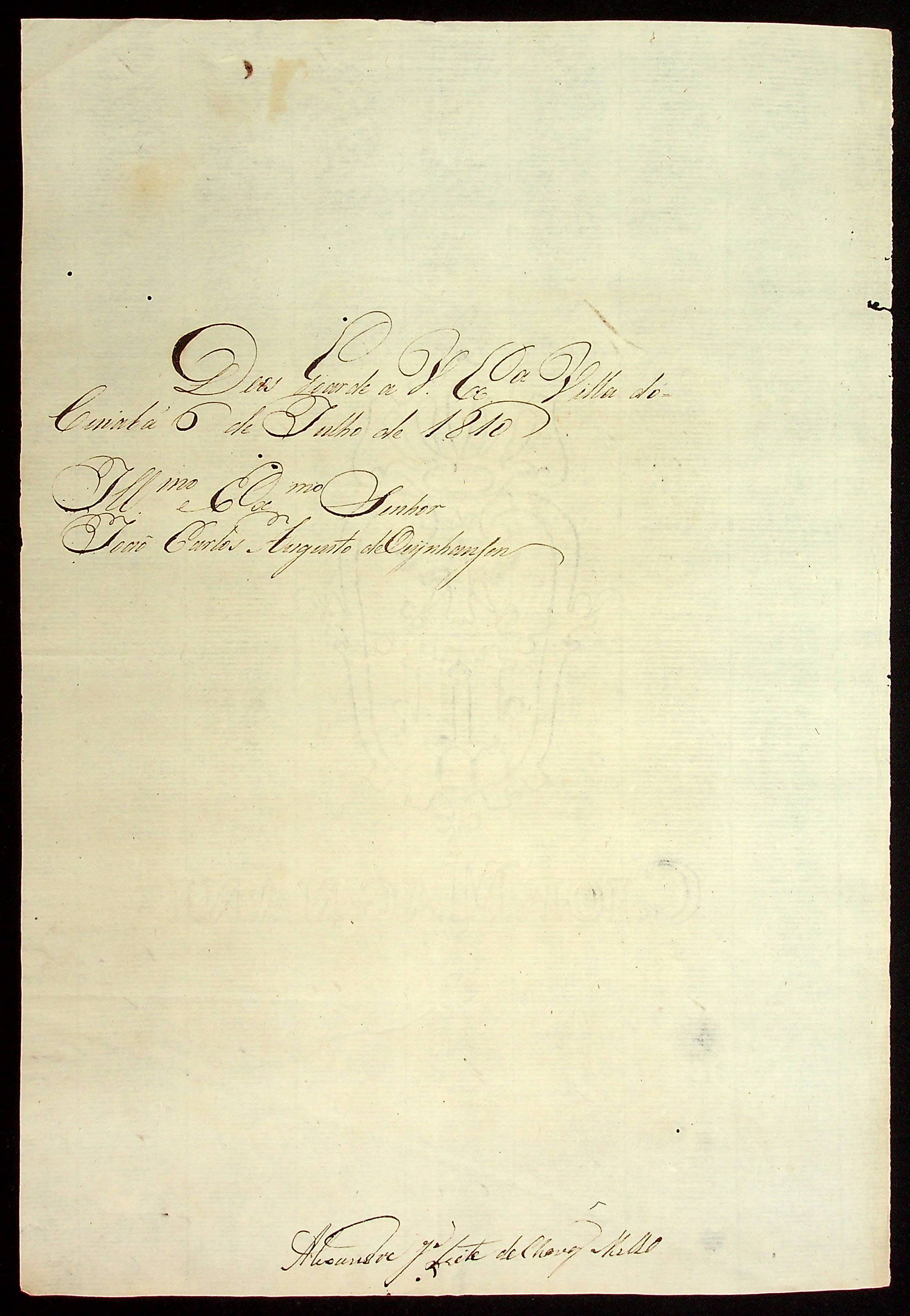CARTA do [Sargento mor Ajudante de ordens] Alexandre José Leite Chaves de Melo ao [Governador e Capitão-General da Capitania de Mato Grosso] João Carlos Augusto d’Oeynhausen e Gravenberg.
