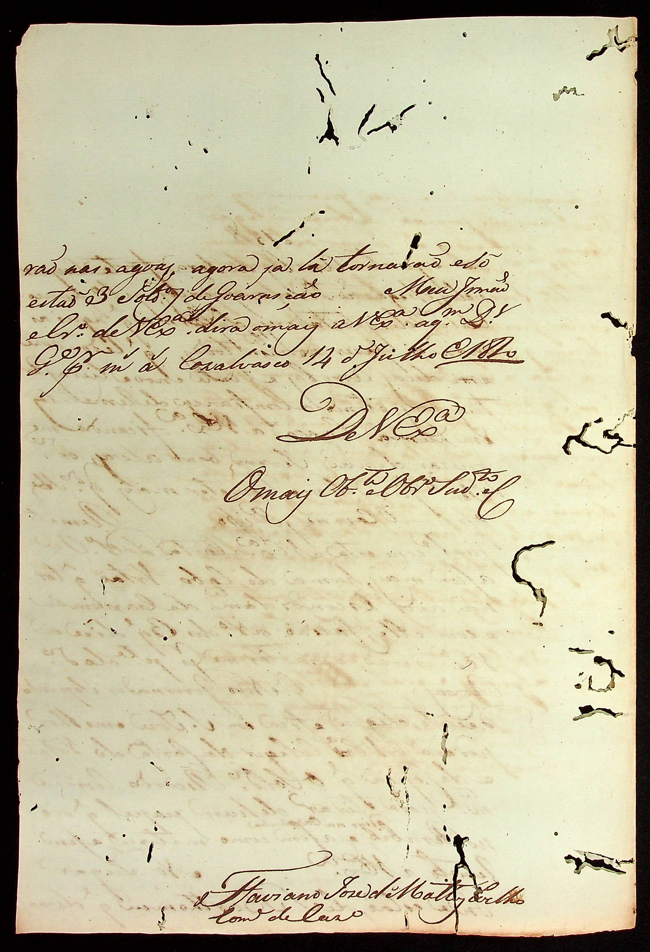 CARTA do [Comandante de Casalvasco] Flaviano José de Matos Coelho ao [Governador e Capitão-General da Capitania de Mato Grosso] João Carlos Augusto d’Oeynhausen e Gravenberg.