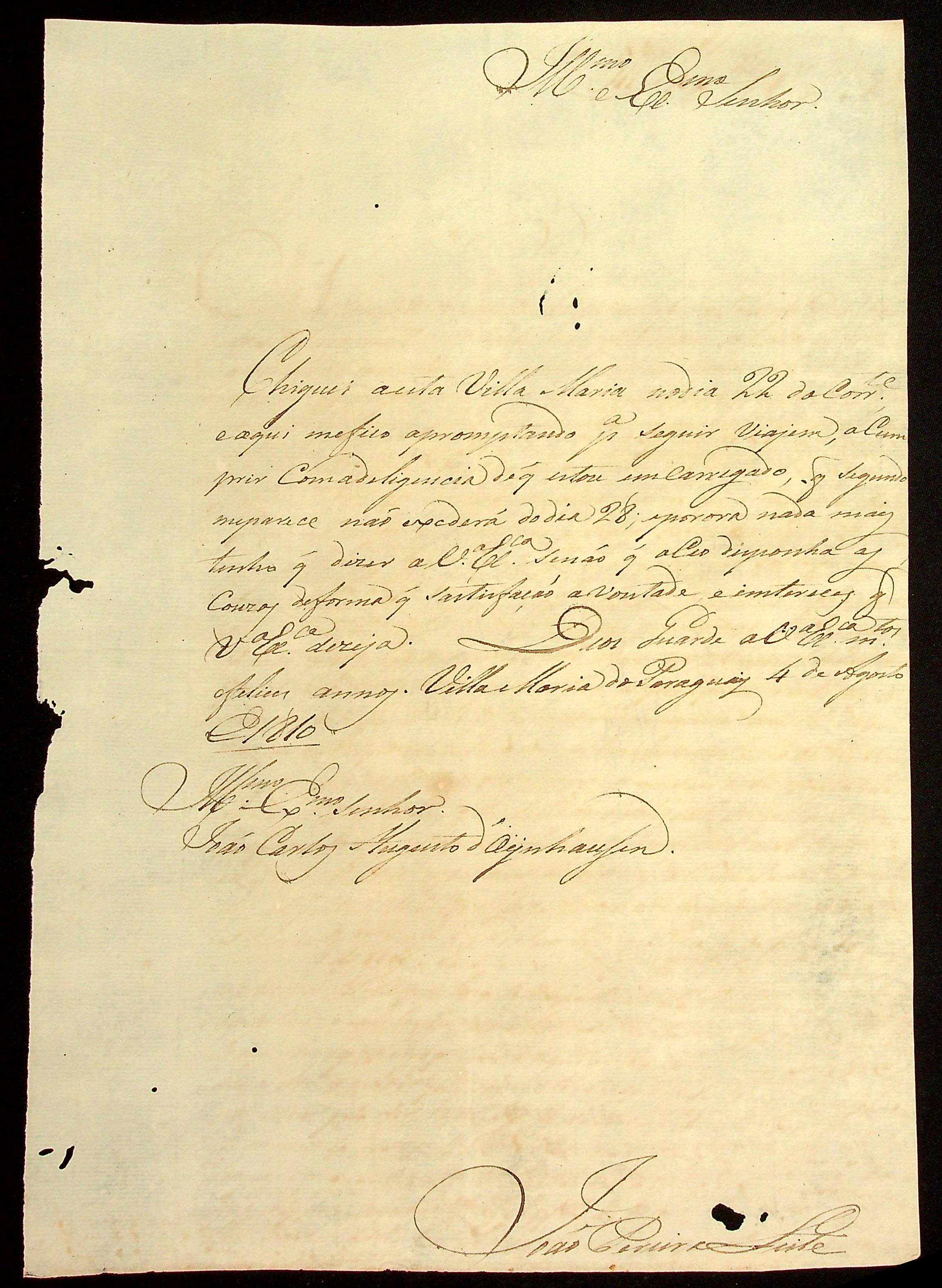 CARTA de João Pereira dos Guimarães ao [Governador e Capitão-General da Capitania de Mato Grosso] João Carlos Augusto d’Oeynhausen e Gravenberg.