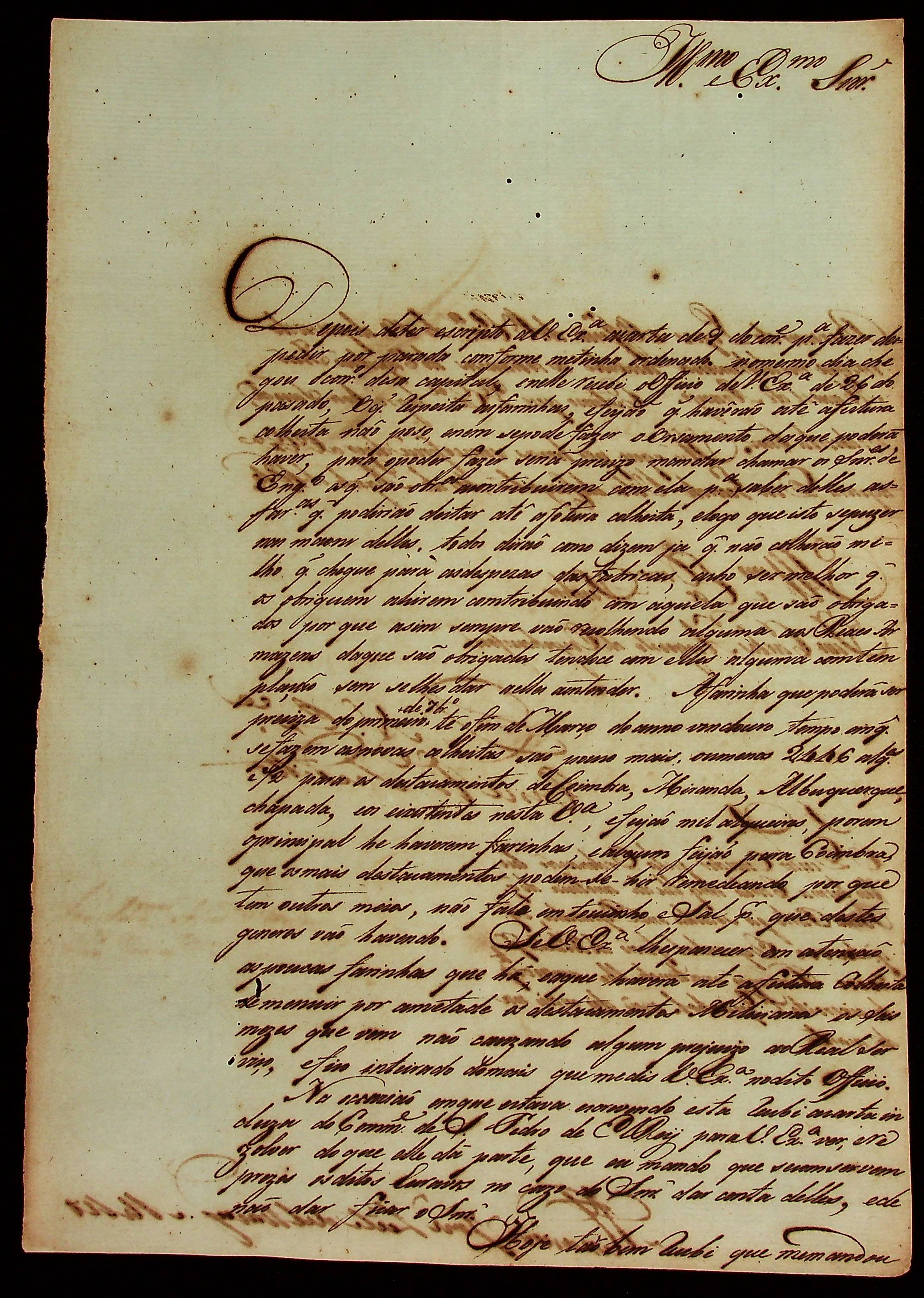 CARTA do [Sargento-mor Comandante e Ajudante de Ordens] Alexandre José leite de Brito ao [Governador e Capitão-General da Capitania de Mato Grosso João Carlos Augusto d’Oeynhausen e Gravenberg].