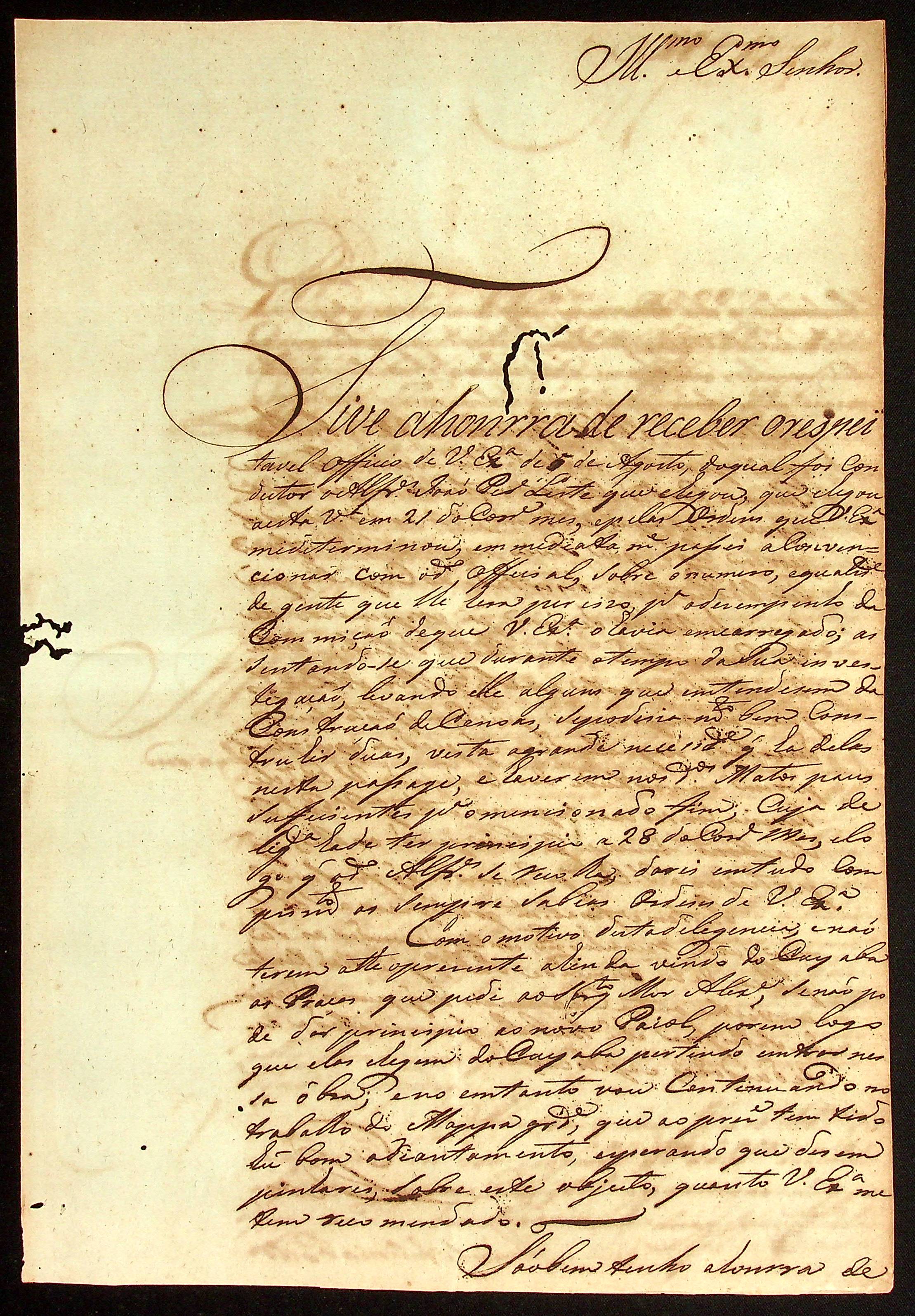 CARTA de Vitoriano José Rodrigues ao [Governador e Capitão-General da Capitania de Mato Grosso] João Carlos Augusto d’Oeynhausen e Gravenberg.
