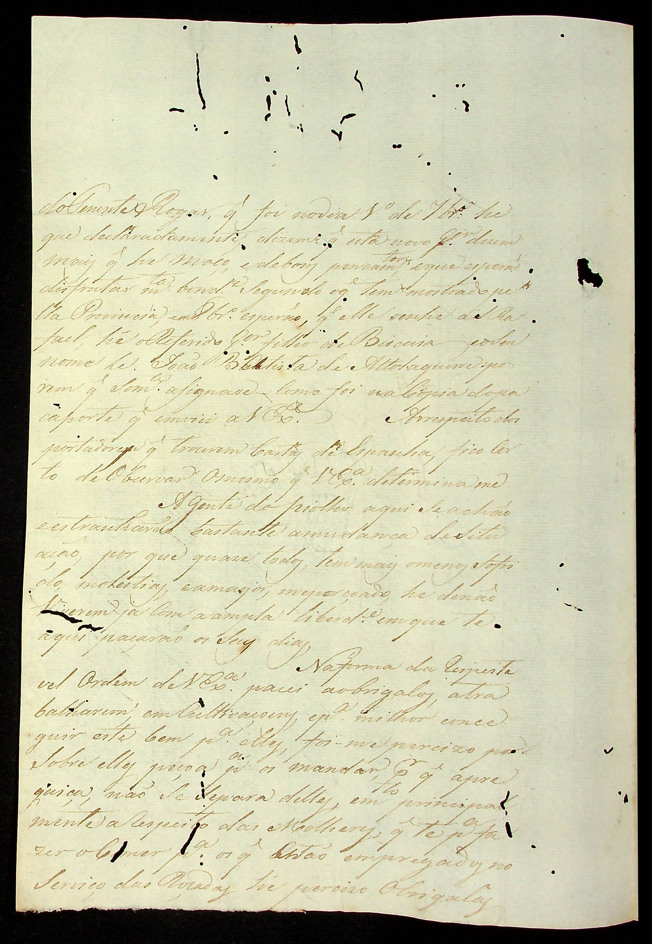 CARTA do [Alferes e Comandante de Casalvasco] Flaviano José de Matos Coelho ao [Governador e Capitão-General da Capitania de Mato Grosso] João Carlos Augusto d’Oeynhausen e Gravenberg.