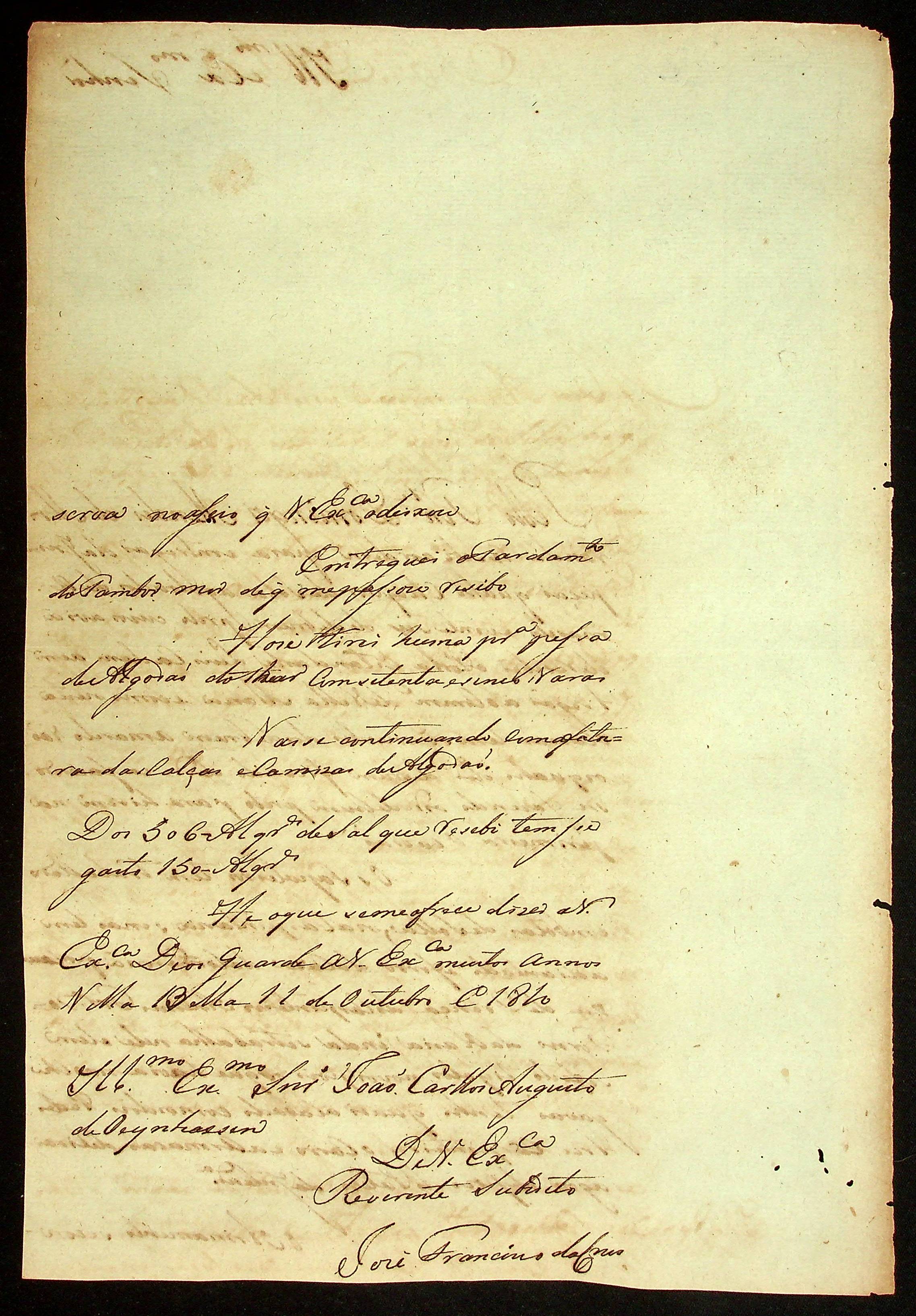 CARTA de José Francisco da Cruz ao [Governador e Capitão-General da Capitania de Mato Grosso] João Carlos Augusto d’Oeynhausen e Gravenberg.