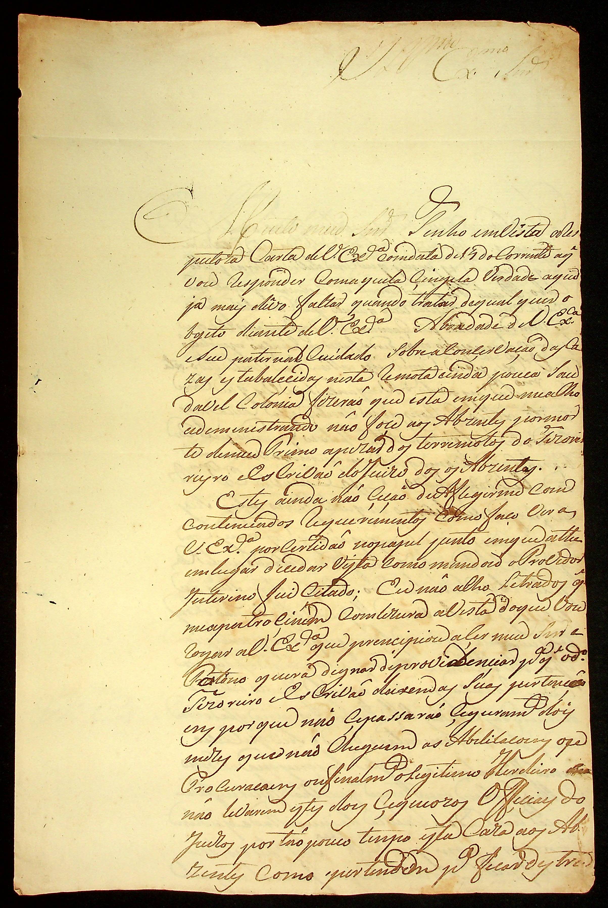 CARTA do [Tenente Comandante] Bartolomeu R. do Prado ao [Governador e Capitão-General da Capitania de Mato Grosso] João Carlos Augusto D´Oyenhausen e Gravemberg.