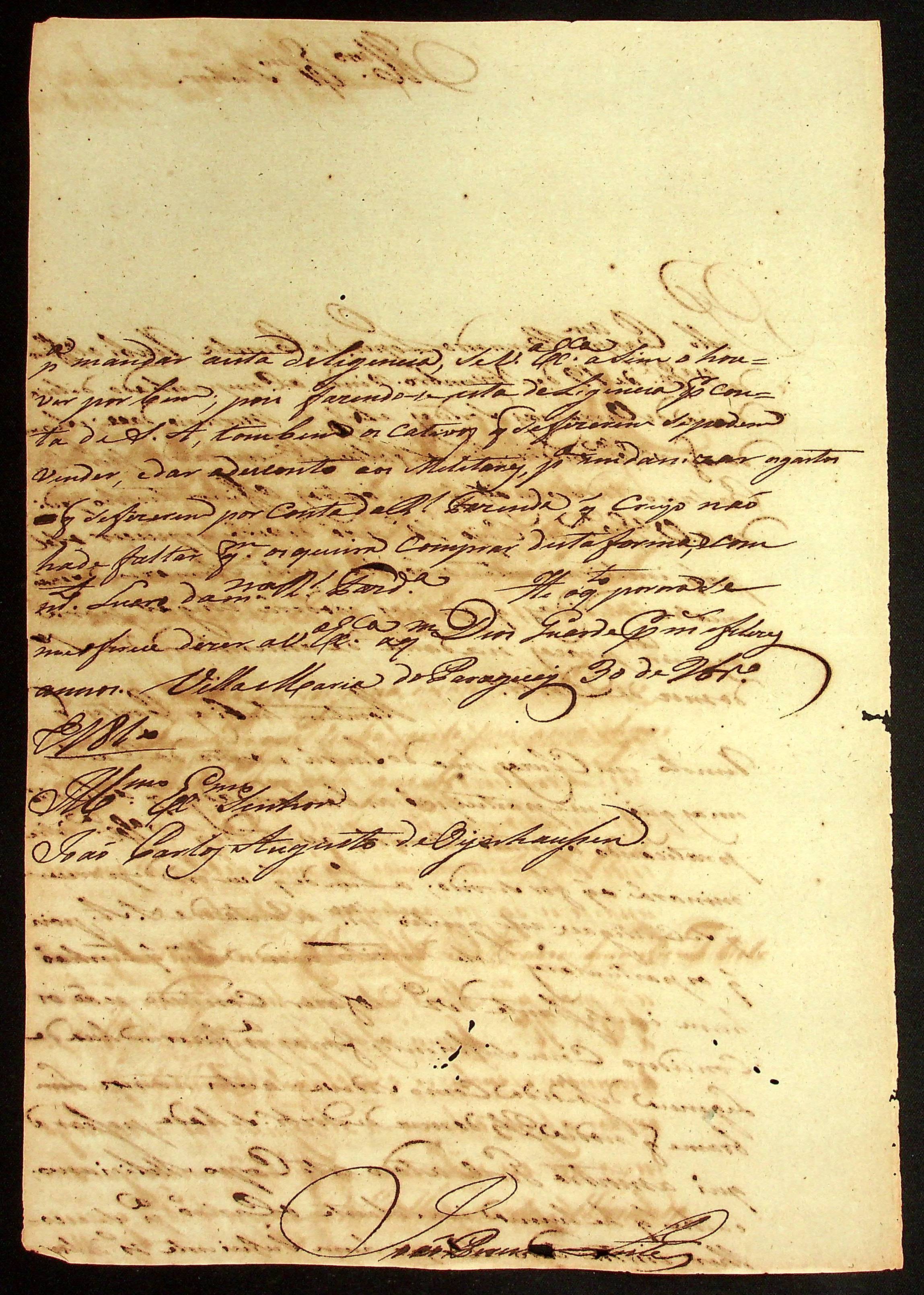 CARTA de João Pereira Leite ao [Governador e Capitão-General da Capitania de Mato Grosso] João Carlos Augusto D´ Oeynhausen e Gravemberg.
