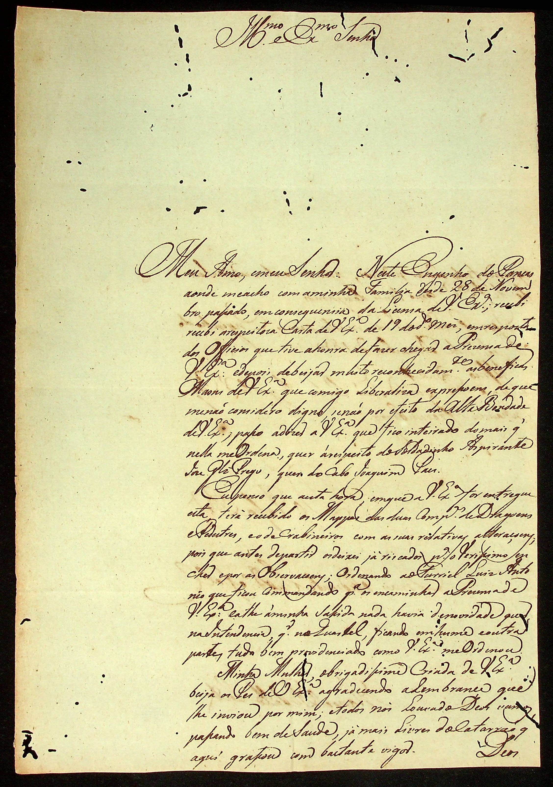 CARTA de Manoel [Rabelo] Leite ao [Governador e Capitão-General da Capitania de Mato Grosso] João Carlos Augusto d’Oeynhausen e Gravenberg.