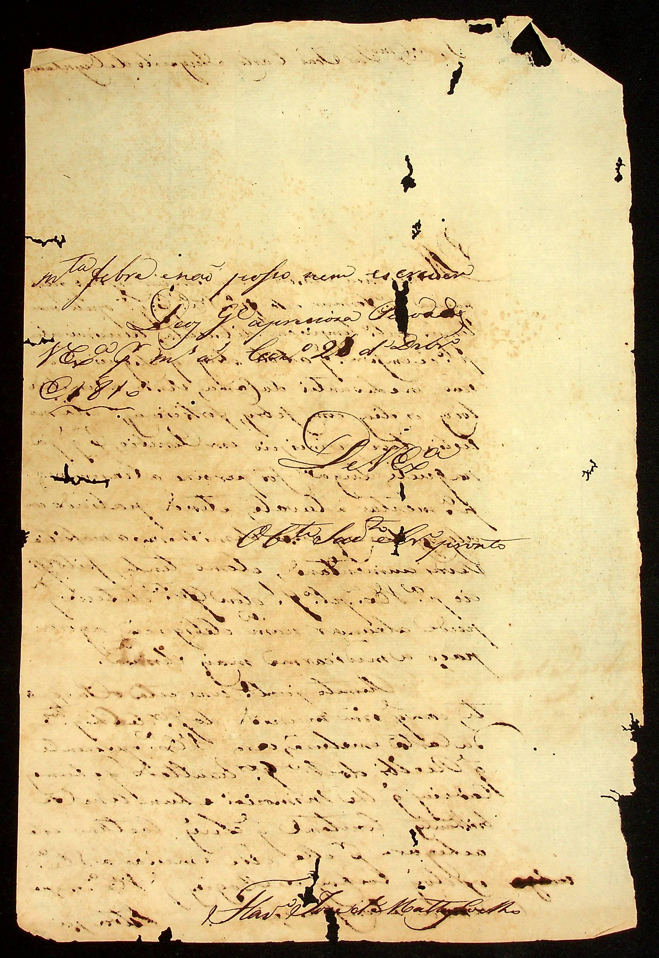 CARTA do [Alferes e Comandante] Flaviano José de Matos Coelho ao [Governador e Capitão-General da Capitania de Mato Grosso] João Carlos Augusto d’Oeynhausen e Gravenberg.