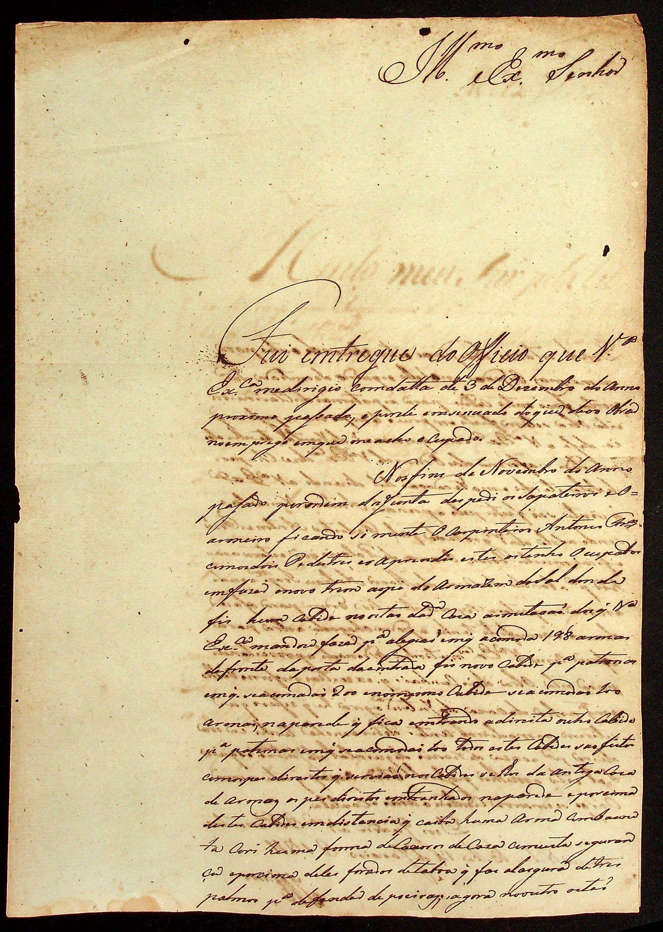 CARTA do [Tenente] José Francisco da Cruz ao [Governador e Capitão-General da Capitania de Mato Grosso] João Carlos Augusto d’Oeynhausen e Gravenberg.