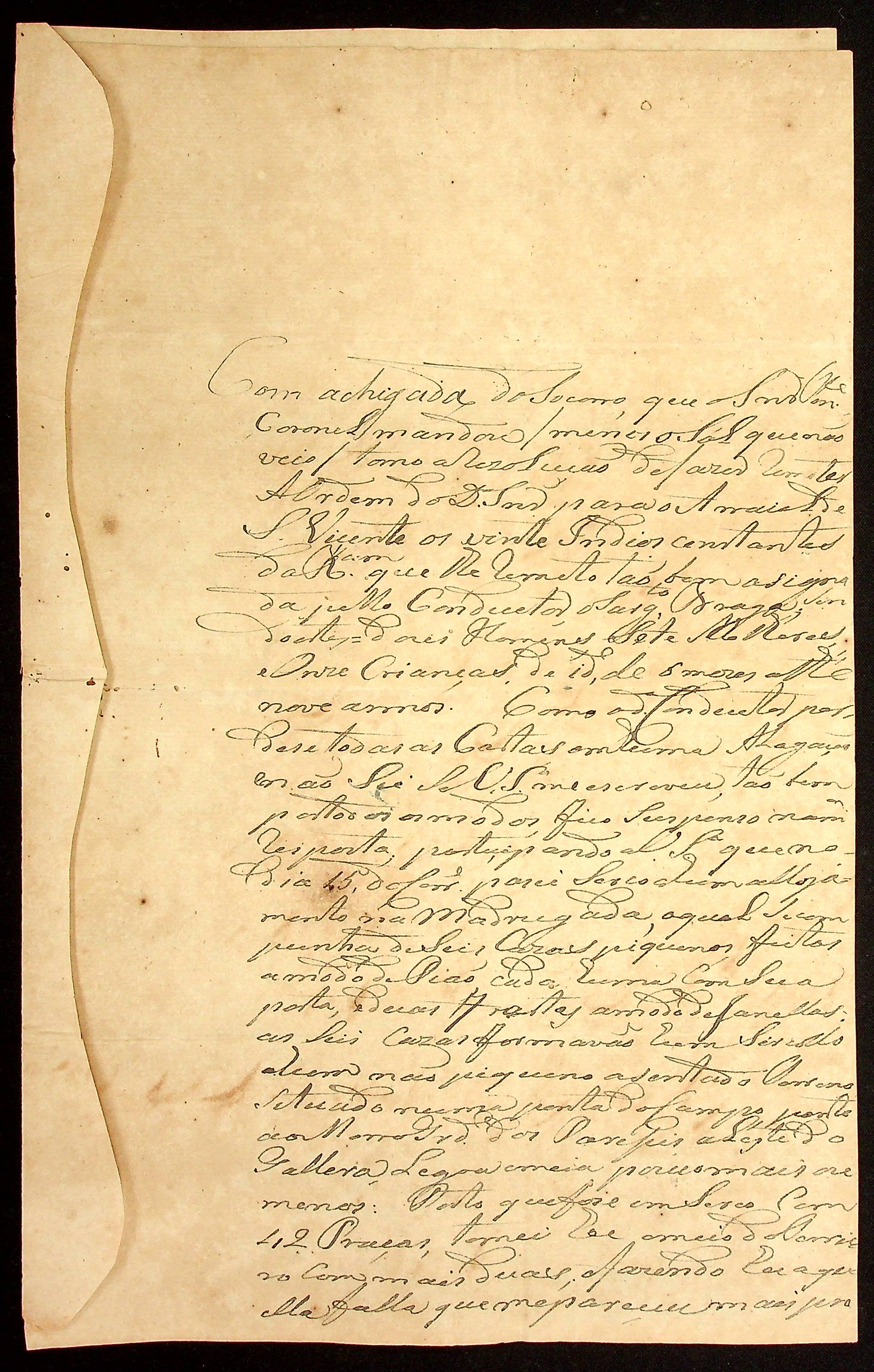 CARTA do Alferes de Dragão Comandante da Expedição Luís Antônio de Souza ao [Governador e Capitão-General da Capitania de Mato Grosso] João Carlos Augusto d’Oeynhausen e Gravenberg.