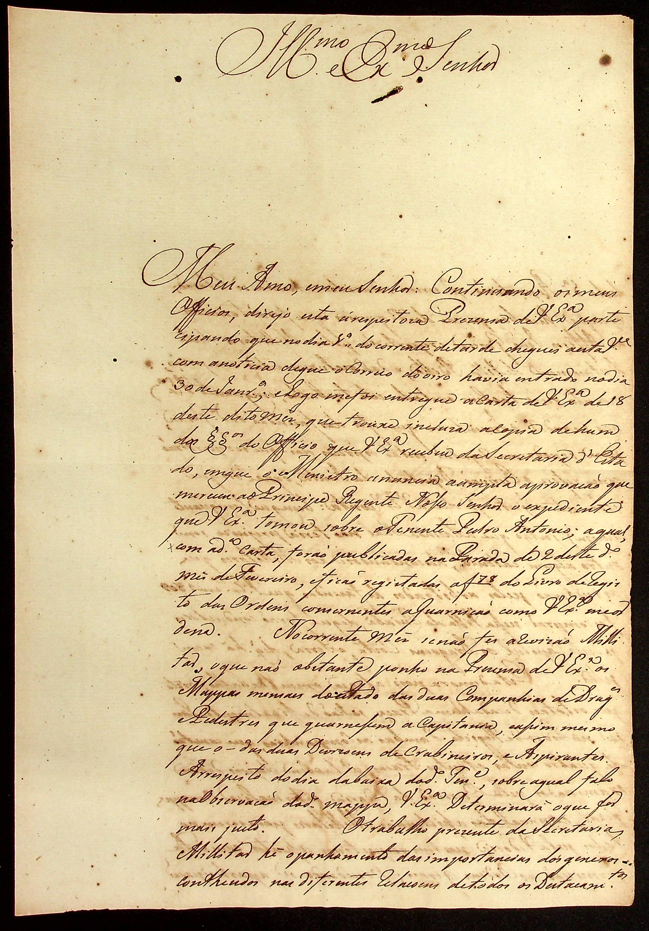 CARTA do [Tenente Comandante] Manoel [Rabelo] Leite ao Governador e Capitão-General da Capitania de Mato Grosso João Carlos Augusto d’Oeynhausen e Gravenberg.
