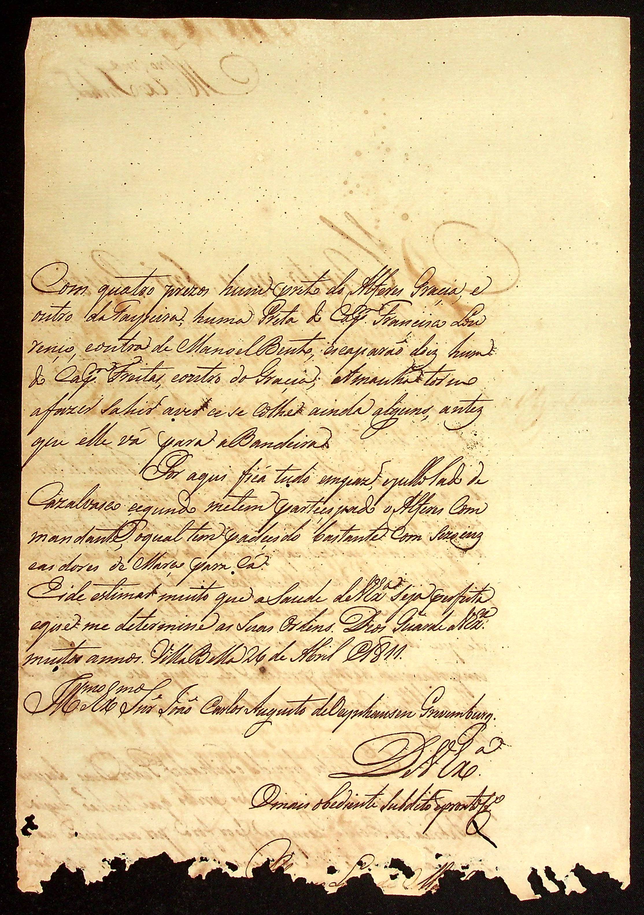 CARTA do [Tenente-Coronel Alexandre José Leite Chaves de Melo] ao [Governador e Capitão-General da Capitania de Mato Grosso] João Carlos Augusto d’Oeynhausen e Gravenberg.