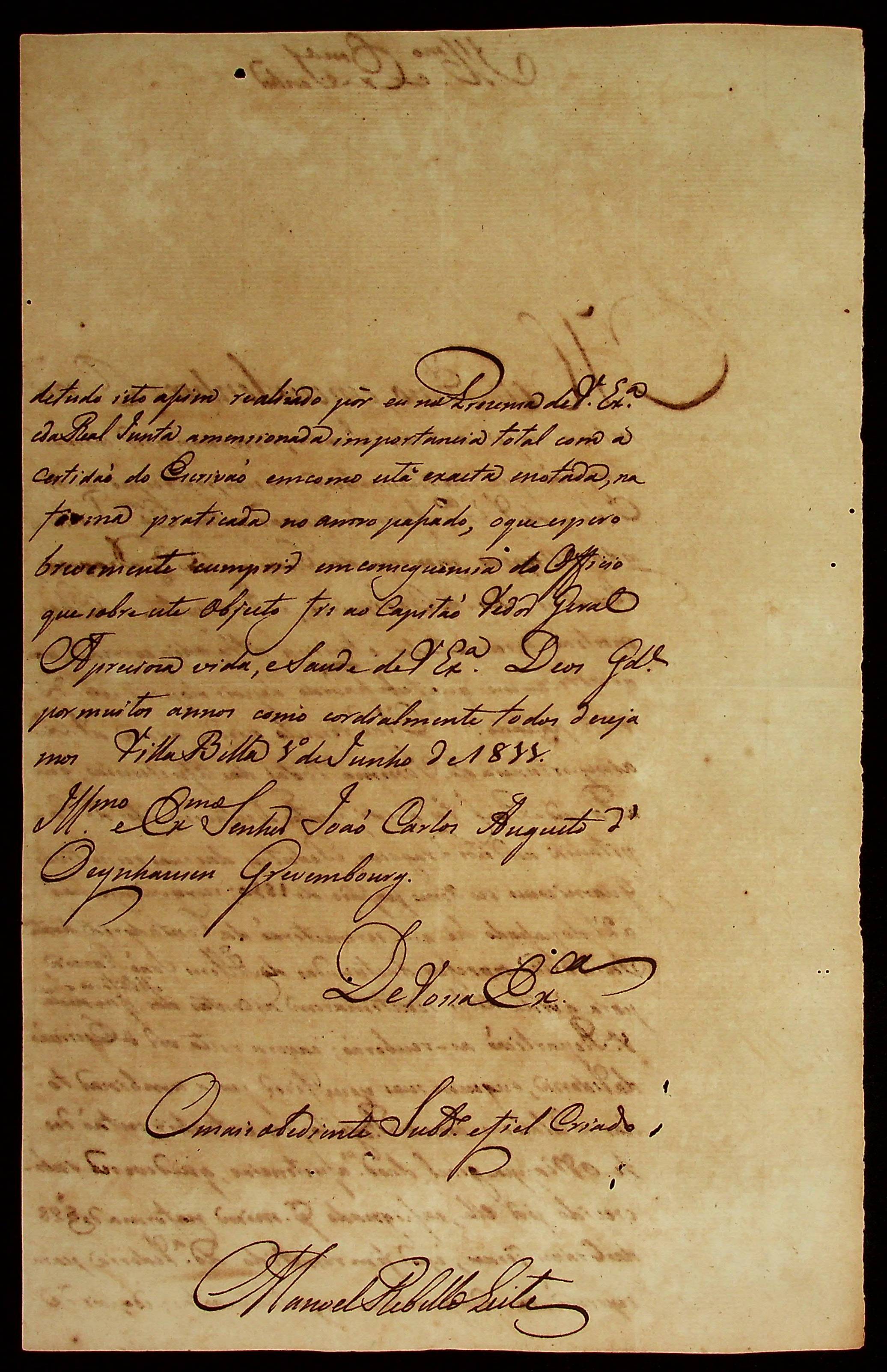 CARTA de Manoel [Rabelo] Leite ao [Governador e Capitão-General da Capitania de Mato Grosso] João Carlos Augusto d’Oeynhausen e Gravenberg.