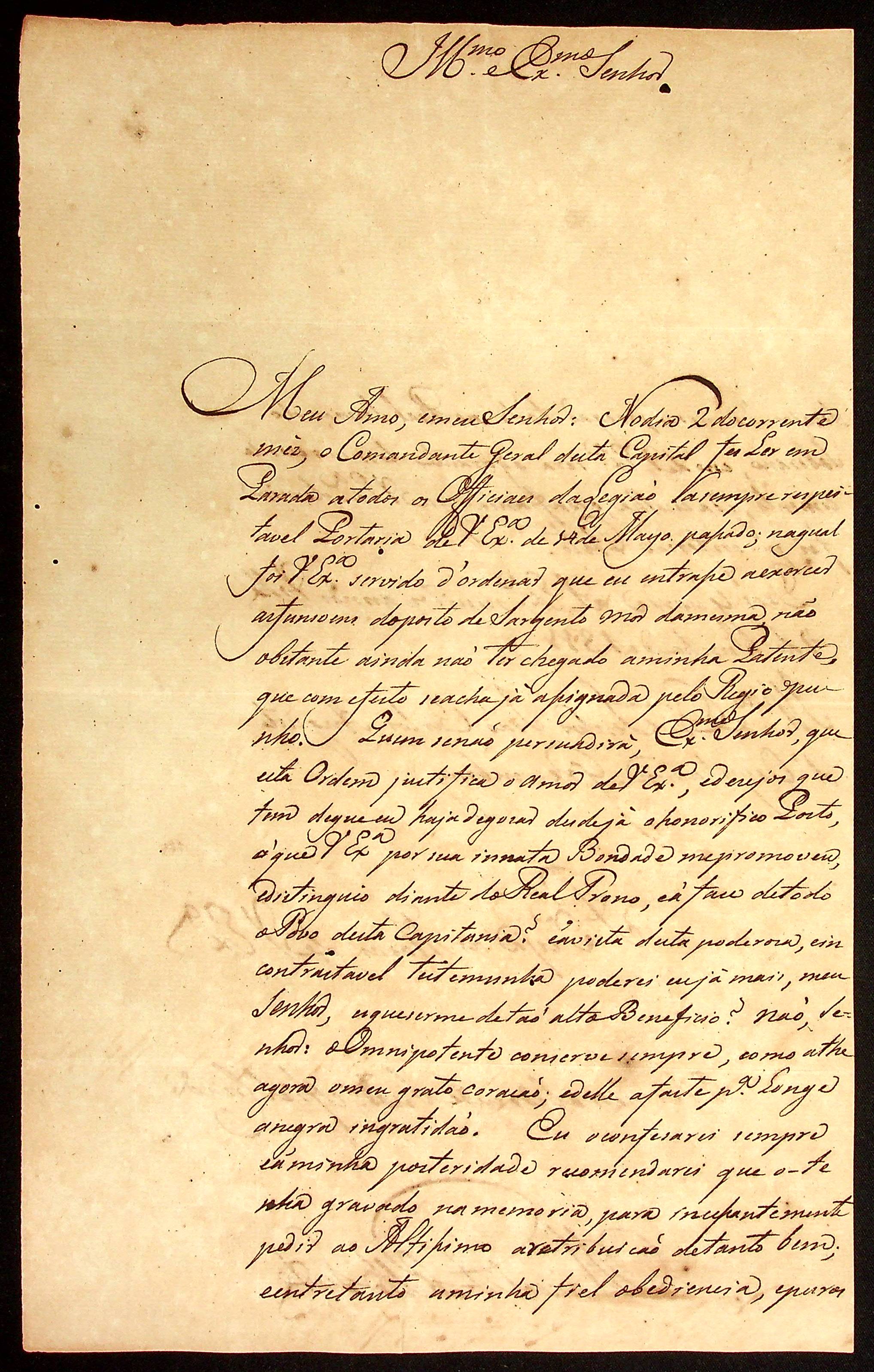 CARTA de Manoel [Rabelo] Leite ao [Governador e Capitão-General da Capitania de Mato Grosso] João Carlos Augusto d’Oeynhausen e Gravenberg.