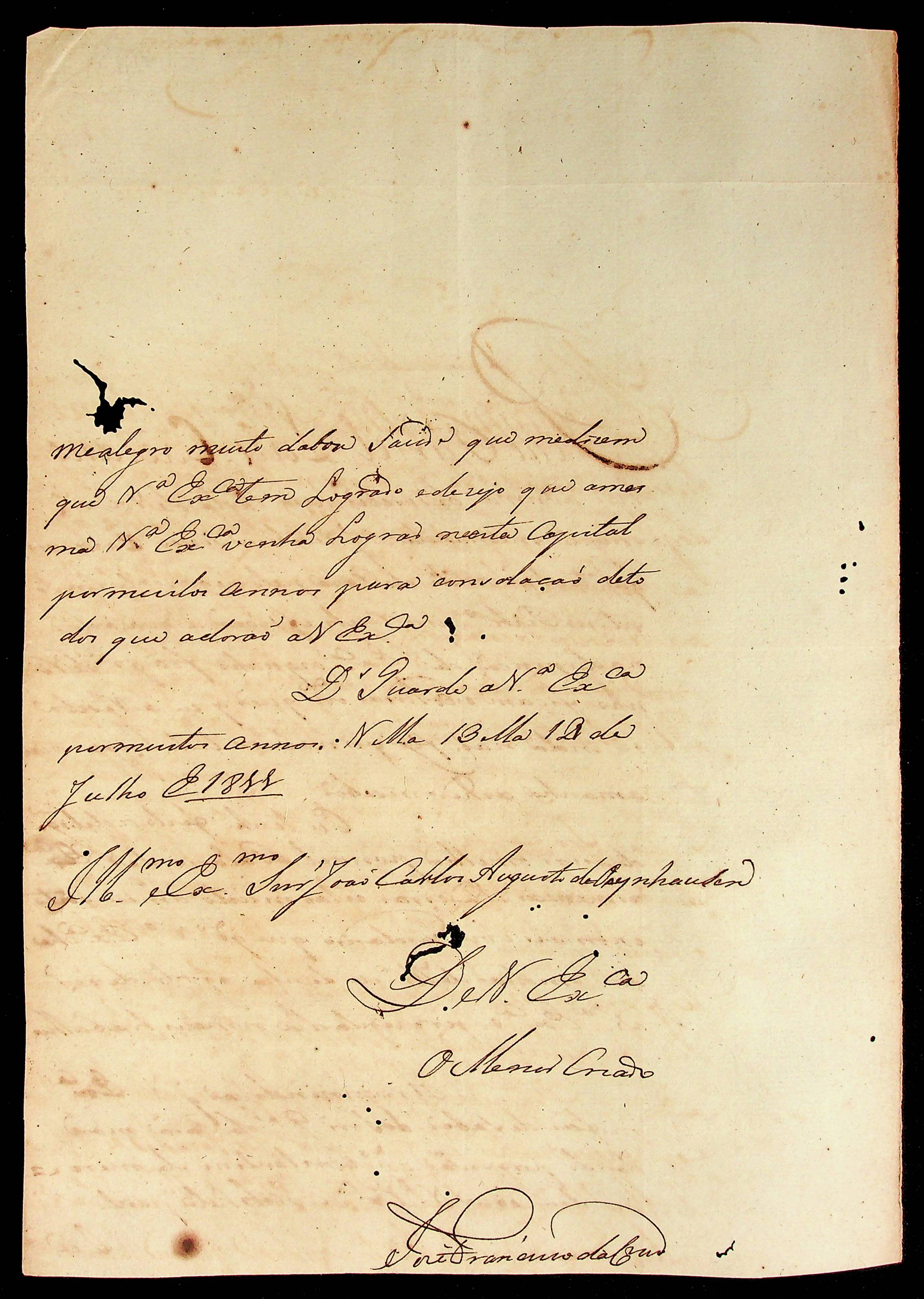 CARTA do [Tenente] José Francisco da [Cruz] ao [Governador e Capitão-General da Capitania de Mato Grosso] João Carlos Augusto d’Oeynhausen e Gravenberg.