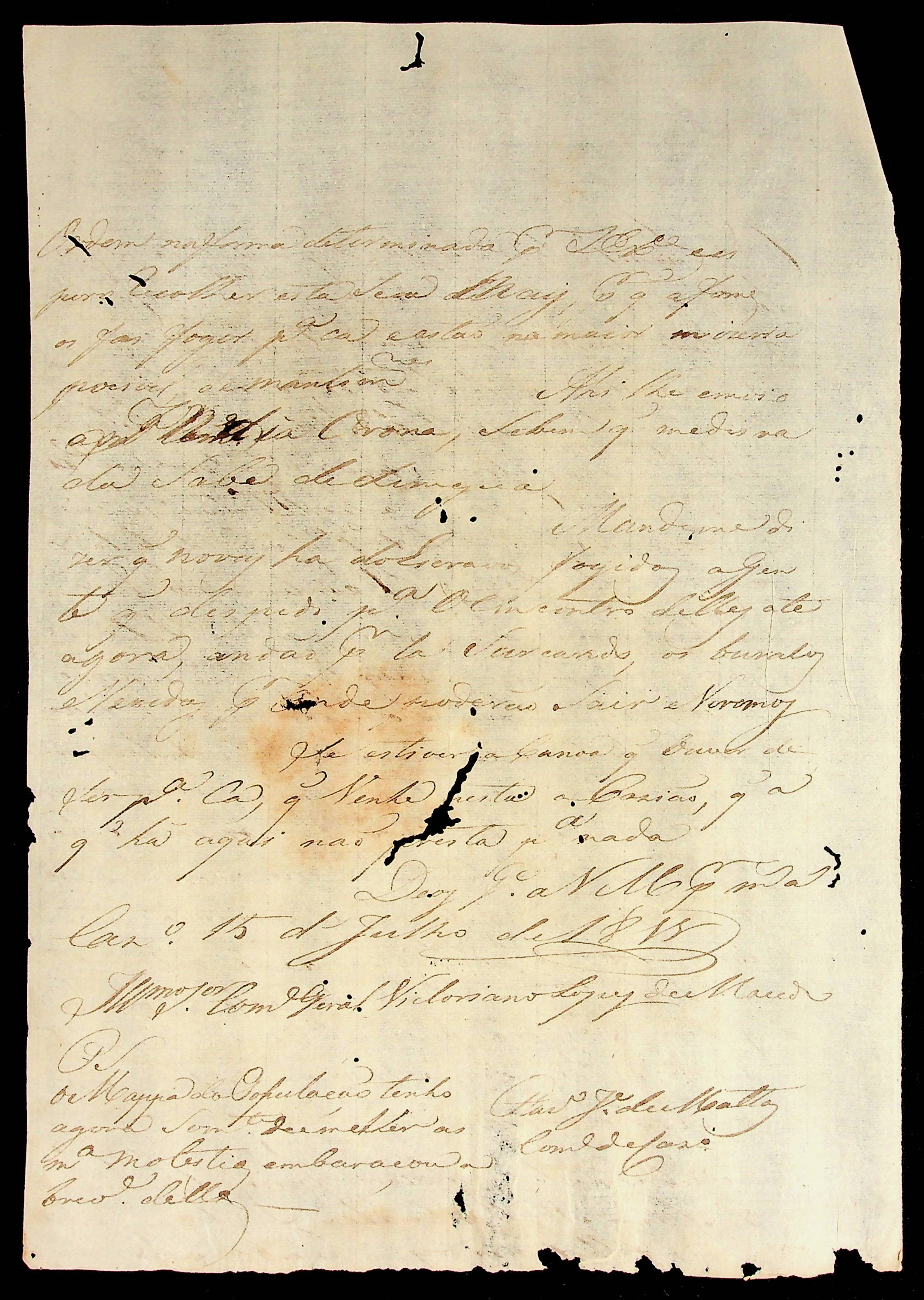 CARTA do [Alferes Comandante de Casalvasco] Flaviano José de Matos Coelho ao [Governador e Capitão-General da Capitania de Mato Grosso] João Carlos Augusto d’Oeynhausen e Gravenberg.