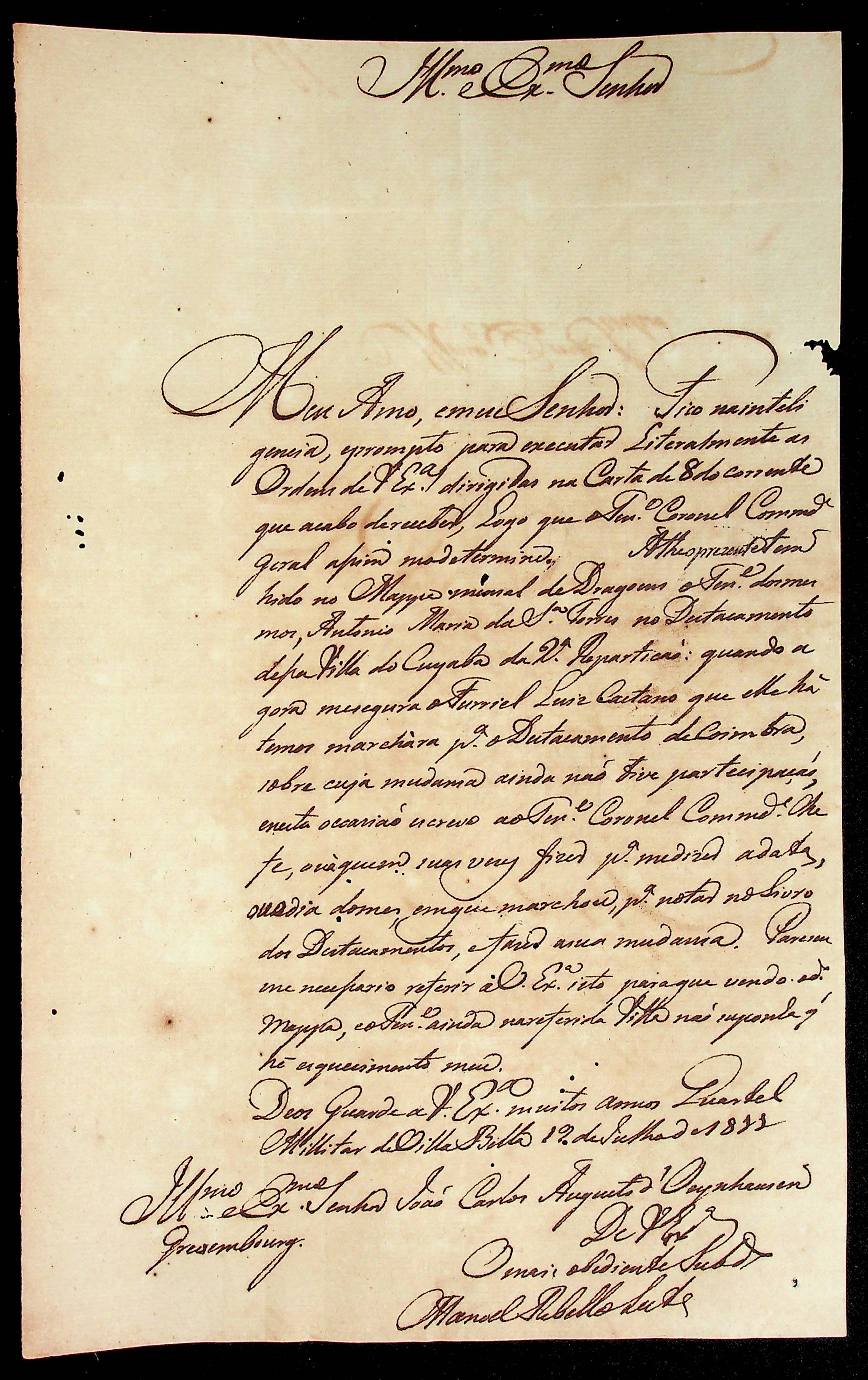 CARTA de Manoel [Rabelo] Leite ao [Governador e Capitão-General da Capitania de Mato Grosso] João Carlos Augusto d’Oeynhausen e Gravenberg.
