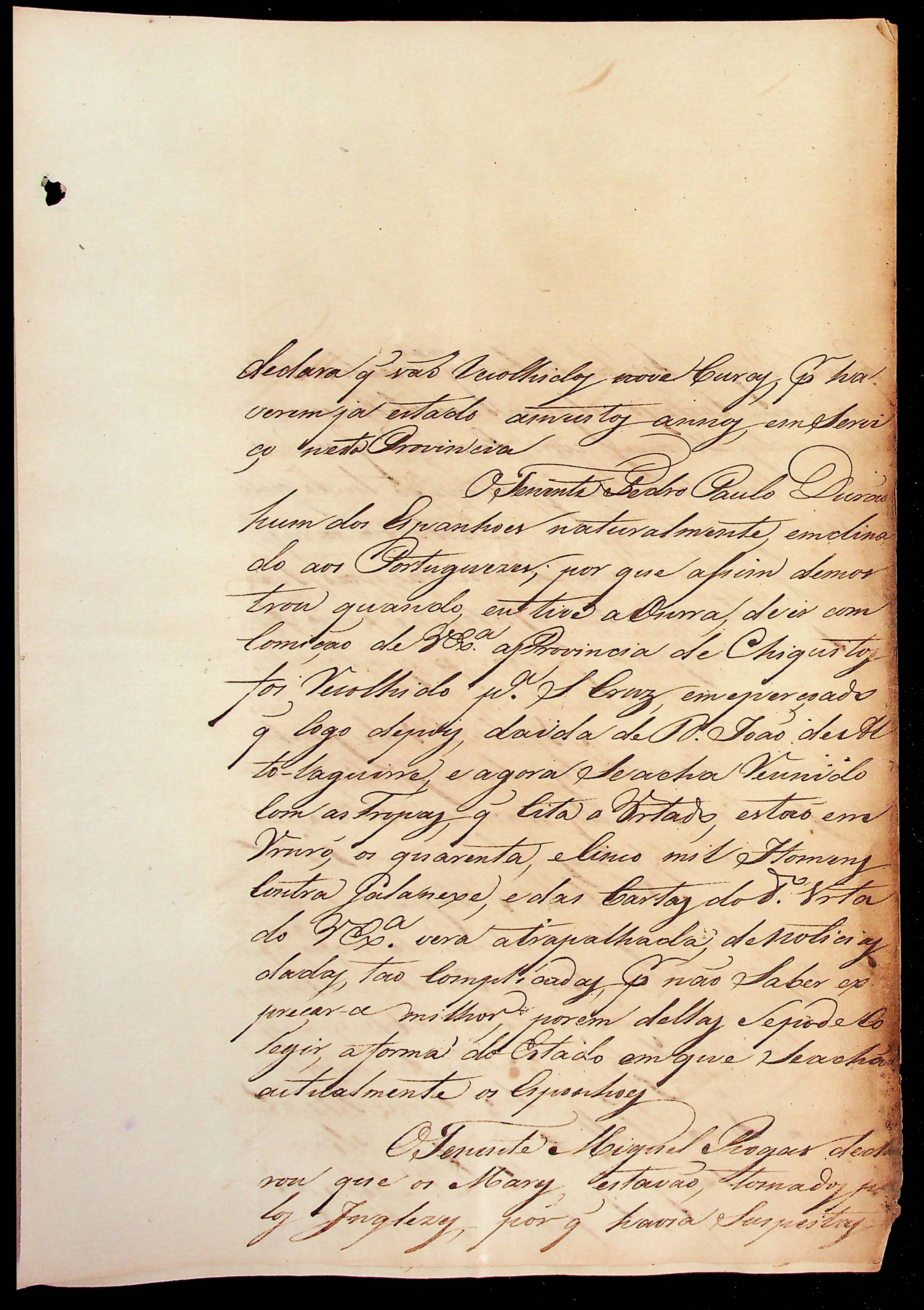 CARTA do [Comandante de Casalvasco] Flaviano José de Matos Coelho ao [Governador e Capitão-General da Capitania de Mato Grosso] João Carlos Augusto d’Oeynhausen e Gravenberg.