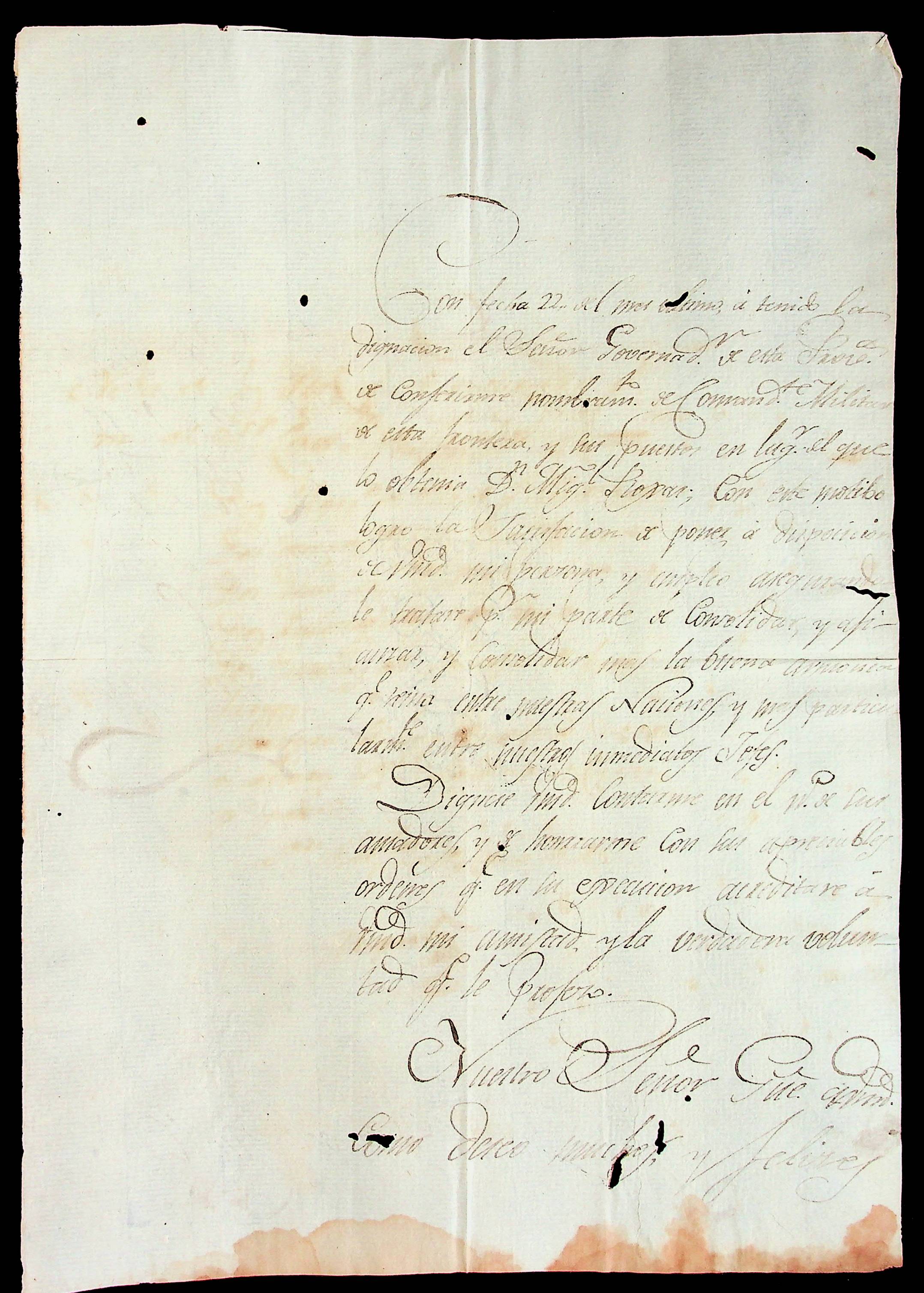 CARTA do [Comandante do Destacamento del Poruby] Juan Francisco [Justiliano] ao Capitão e Comandante de Casalvasco [Flaviano] José de Matos Coelho.