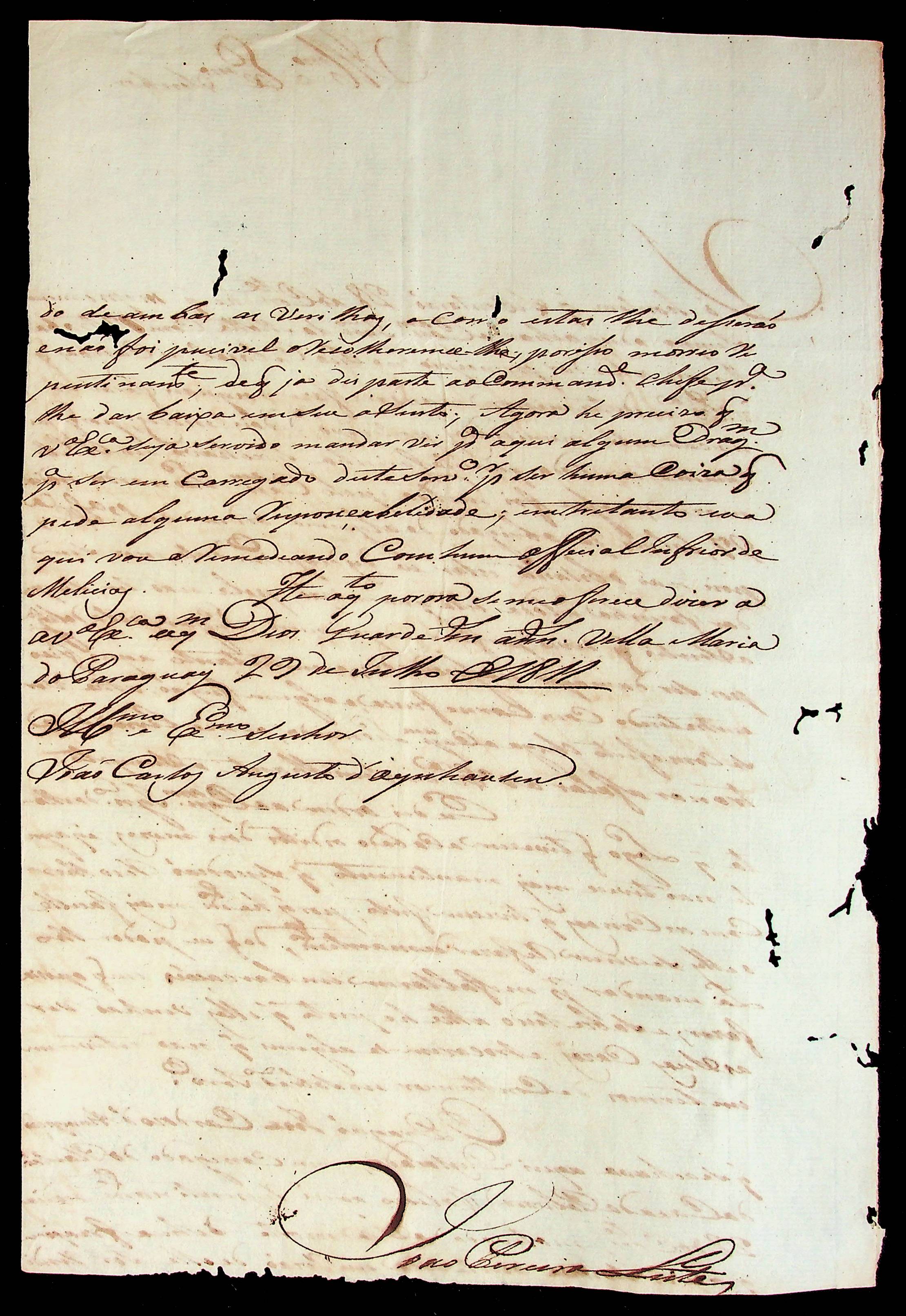 CARTA de João Pereira Leite ao [Governador e Capitão-General da Capitania de Mato Grosso] João Carlos Augusto d’Oeynhausen e Gravenberg.