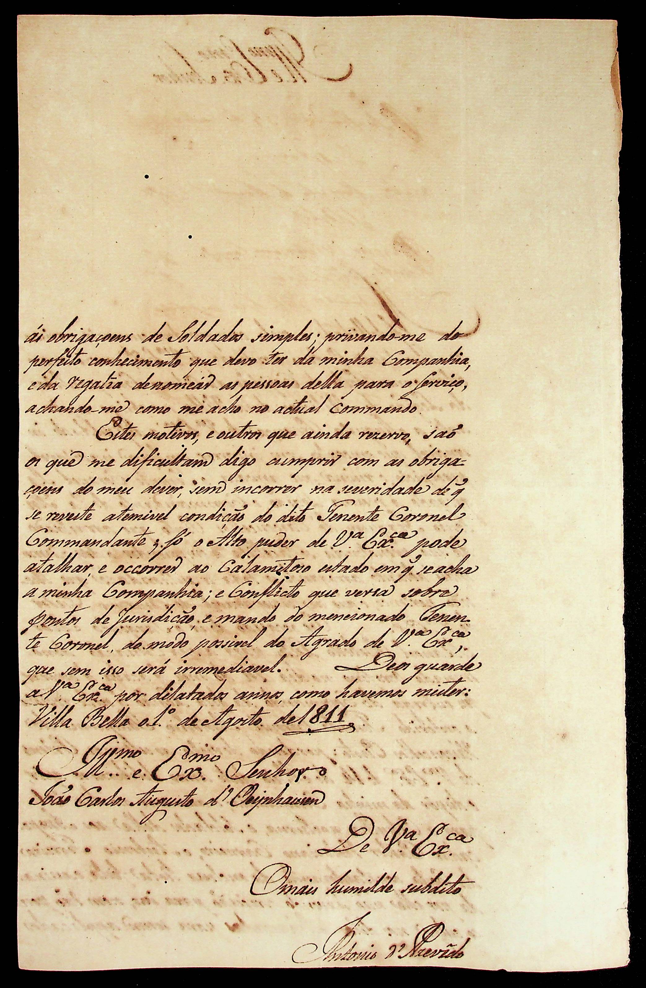 CARTA de Antônio Azevedo ao [Governador e Capitão-General da Capitania de Mato Grosso] João Carlos Augusto d’Oeynhausen e Gravenberg.