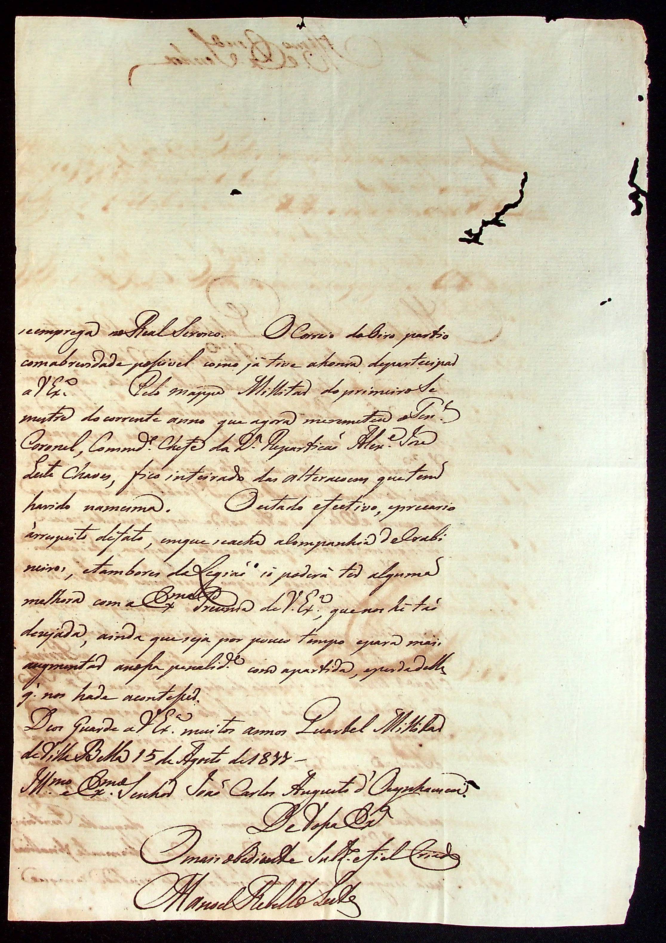 CARTA de Manoel [Rabelo] Leite ao [Governador e Capitão-General da Capitania de Mato Grosso] João Carlos Augusto d’Oeynhausen e Gravenberg.