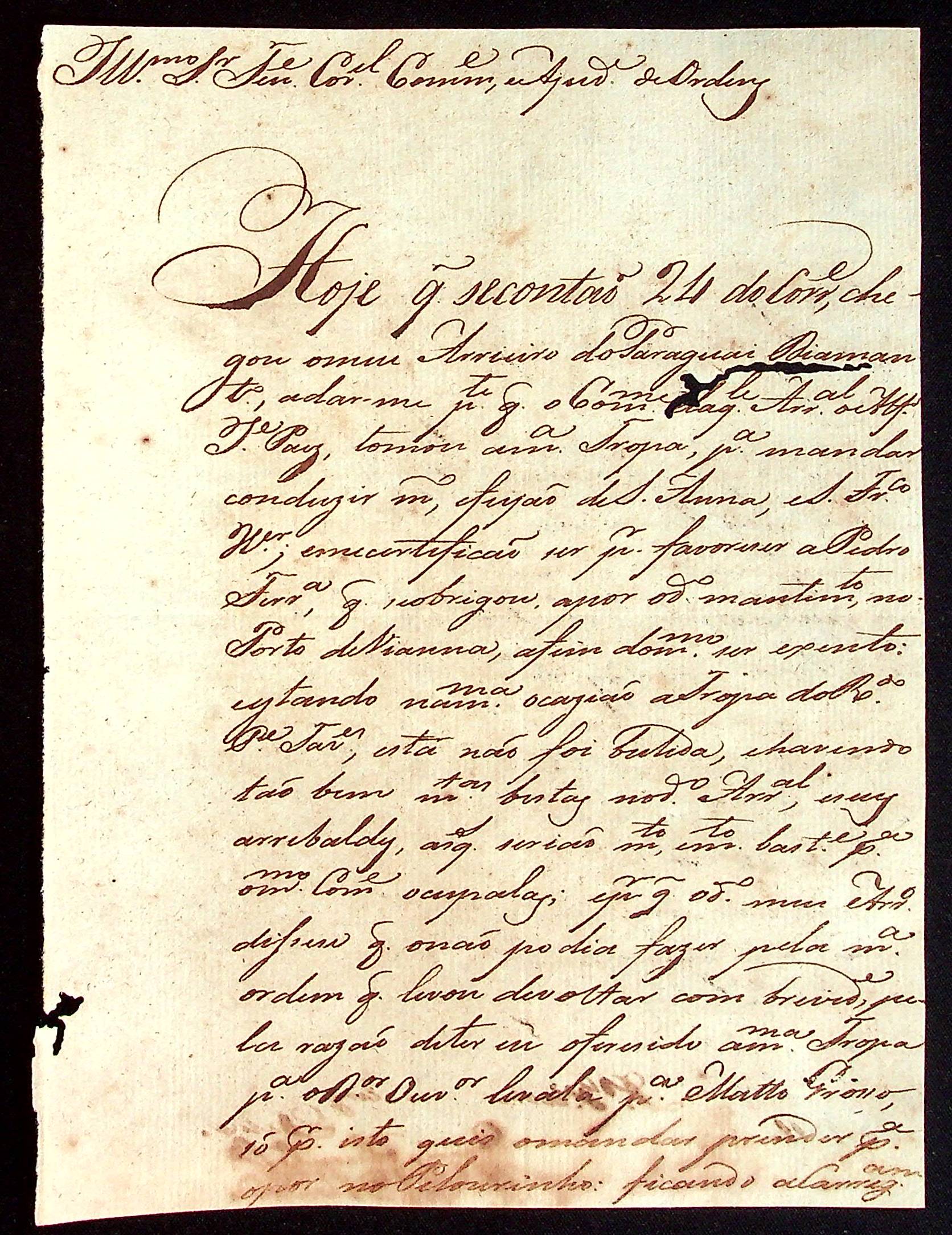 CARTA do [Capitão] Manoel Francisco Rondon ao Tenente-Coronel Comandante e Ajudante de Ordens.