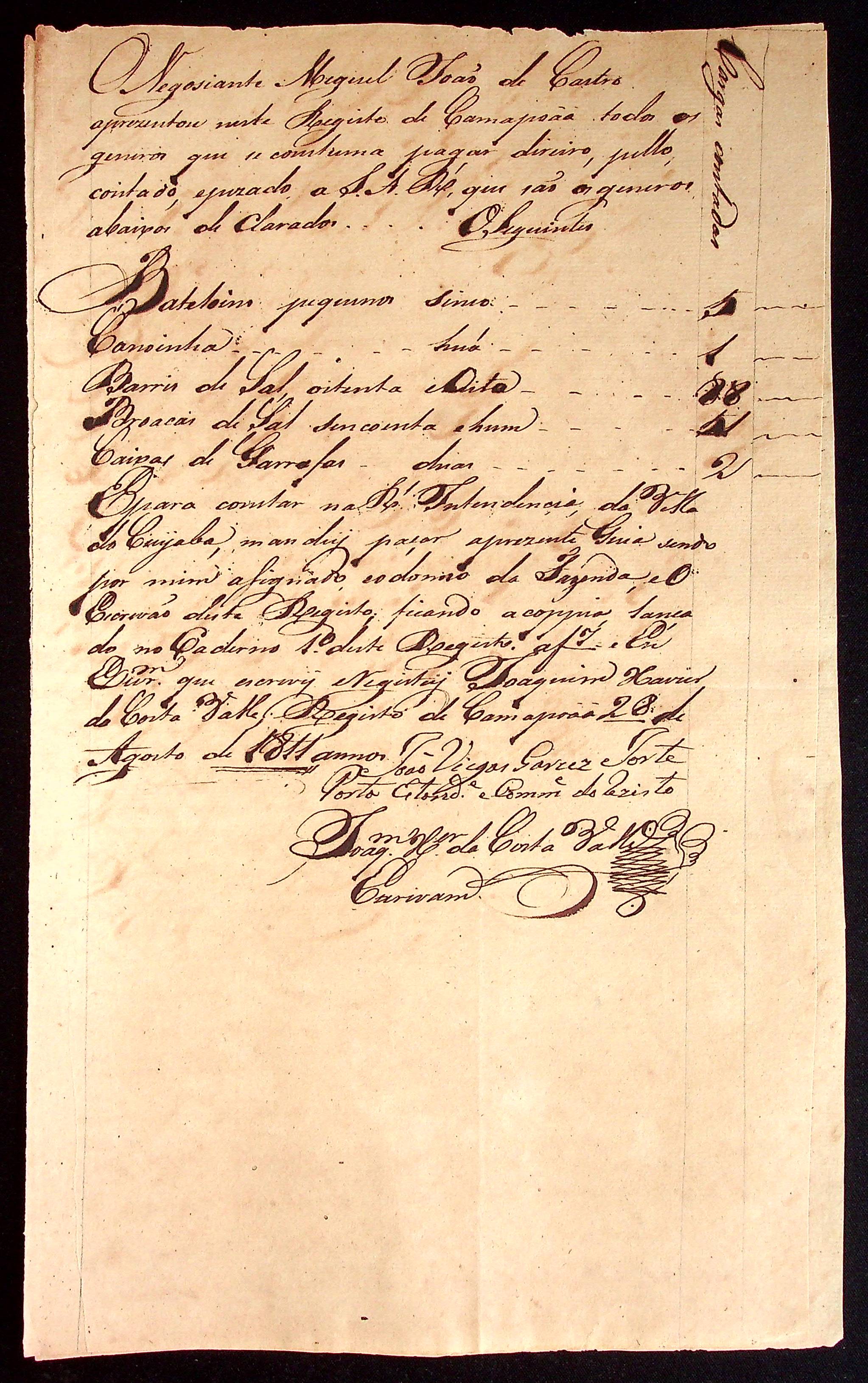CARTA de João Viegas Garcês Torte ao [Governador e Capitão-General da Capitania de Mato Grosso] João Carlos Augusto d’Oeynhausen e Gravenberg.