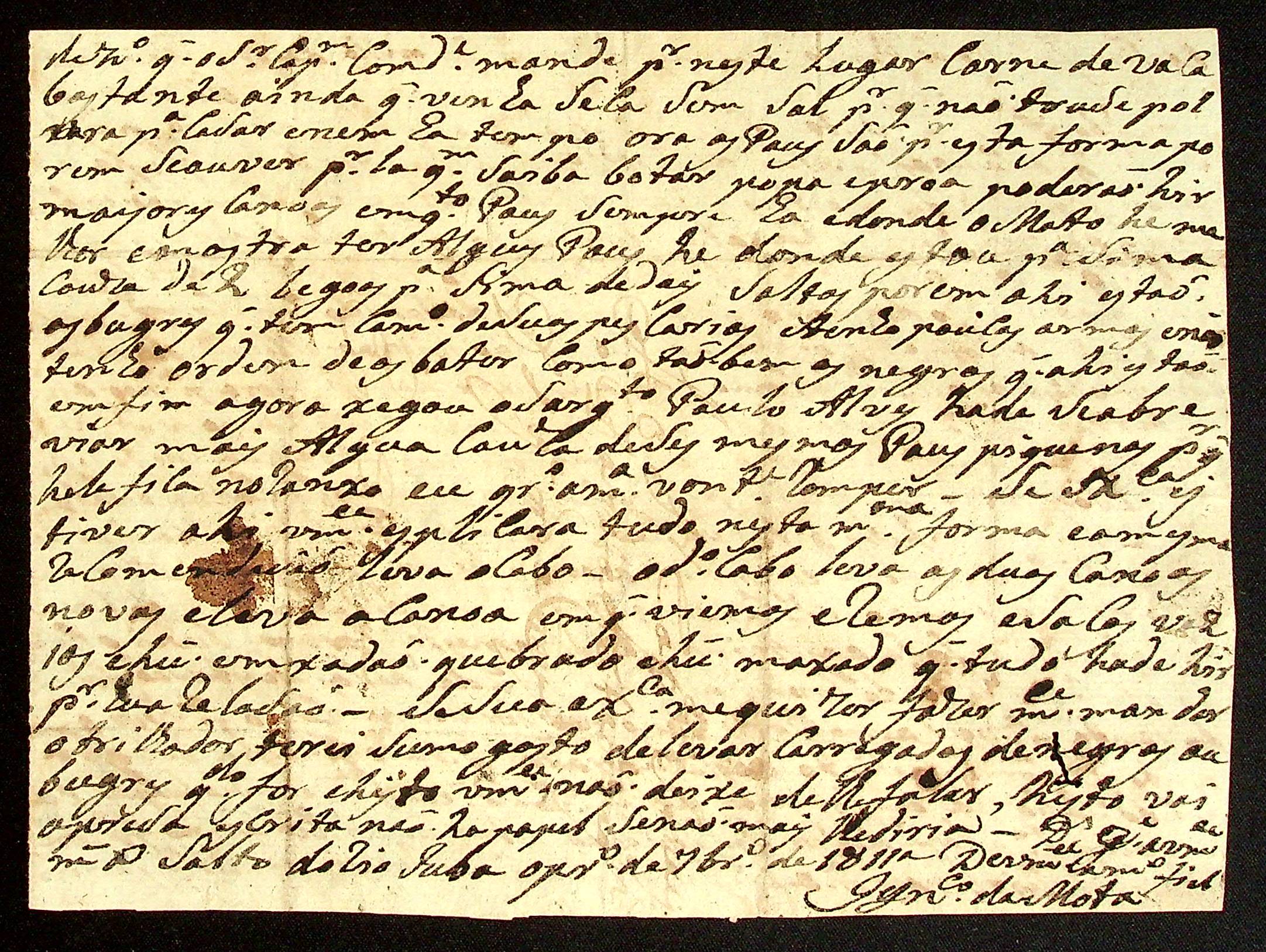 CARTA de Inácio da Mota ao Capitão-mor Manoel Gonçalves Neves.