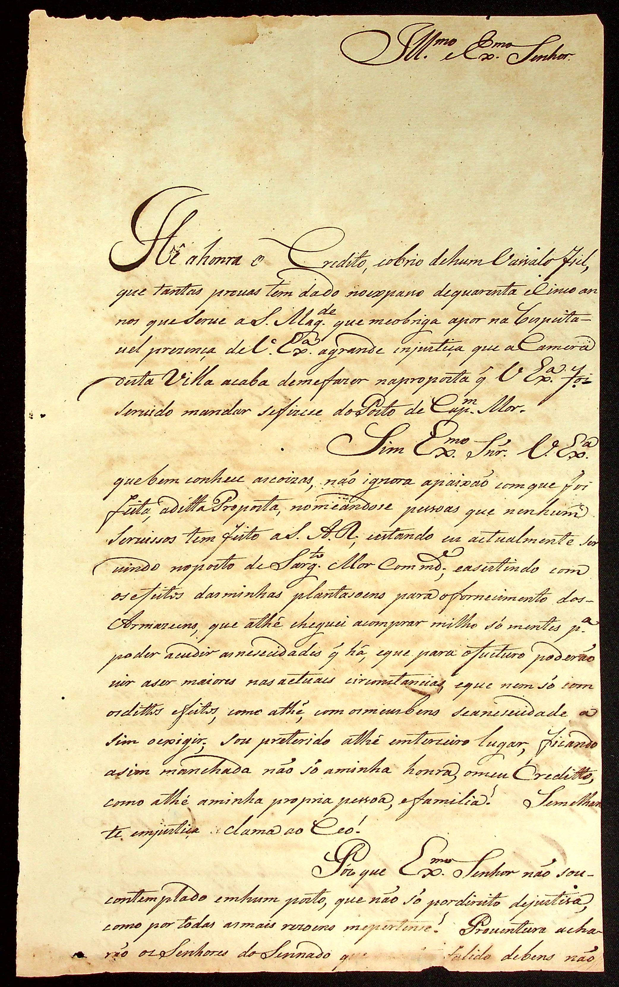 CARTA do Sargento-mor Antônio da [Silva] Albuquerque ao [Governador e Capitão-General da Capitania de Mato Grosso] João Carlos Augusto d’Oeynhausen e Gravenberg.
