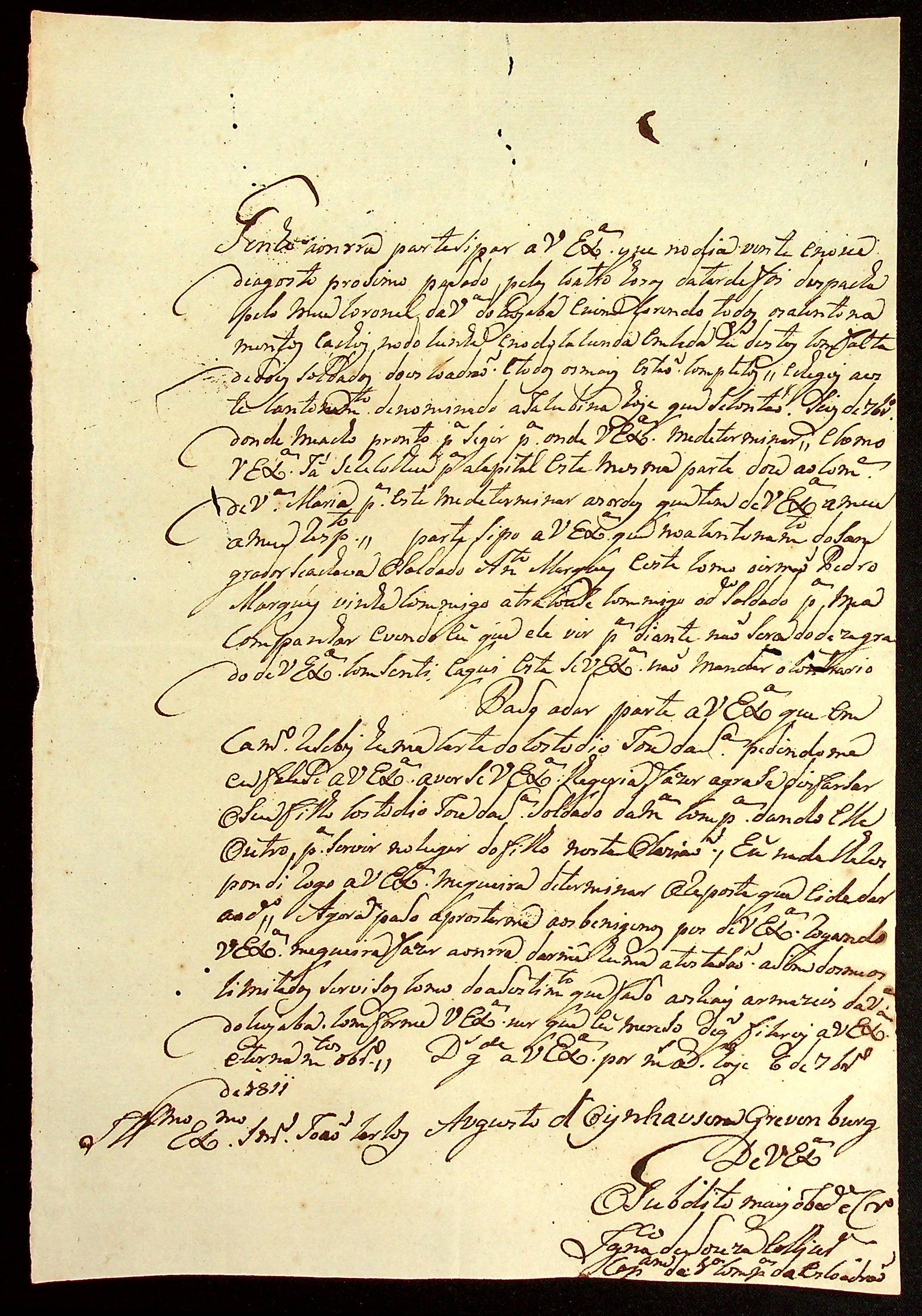 CARTA do Capitão da 1ª Companhia de Esquadra Inácio de Souza […] ao [Governador e Capitão-General da Capitania de Mato Grosso] João Carlos Augusto d’Oeynhausen e Gravenberg.