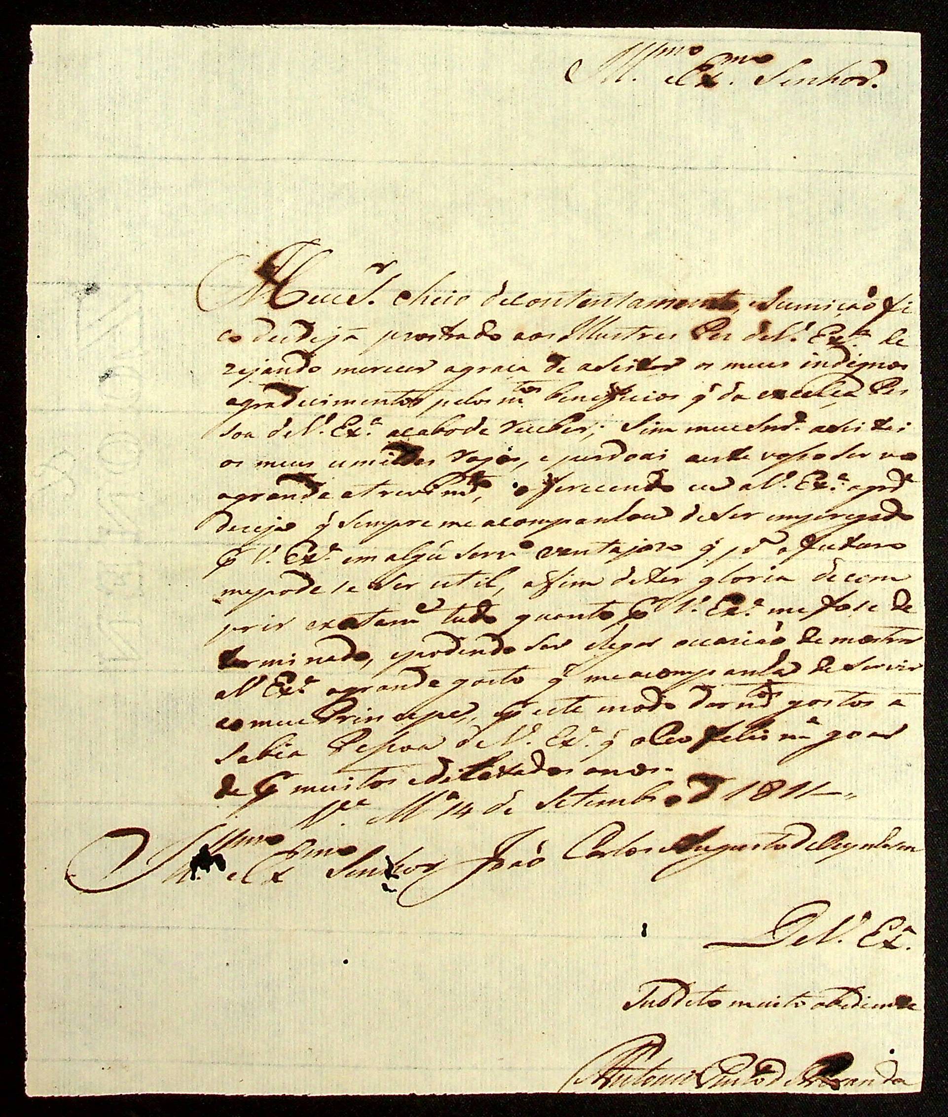 CARTA do [Anspeçada] Antônio Pinto de Miranda ao [Governador e Capitão-General da Capitania de Mato Grosso] João Carlos Augusto d’Oeynhausen e Gravenberg.