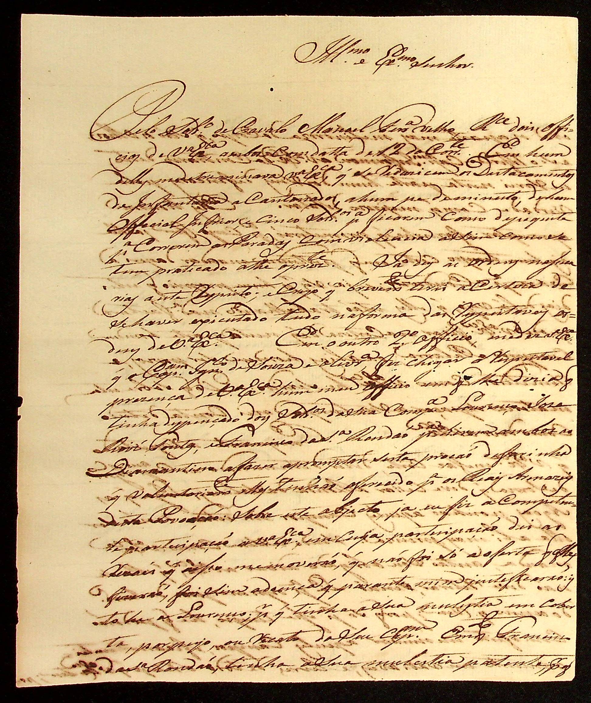 CARTA de João Pereira Leite ao [Governador e Capitão-General da Capitania de Mato Grosso] João Carlos Augusto d’Oeynhausen e Gravenberg.