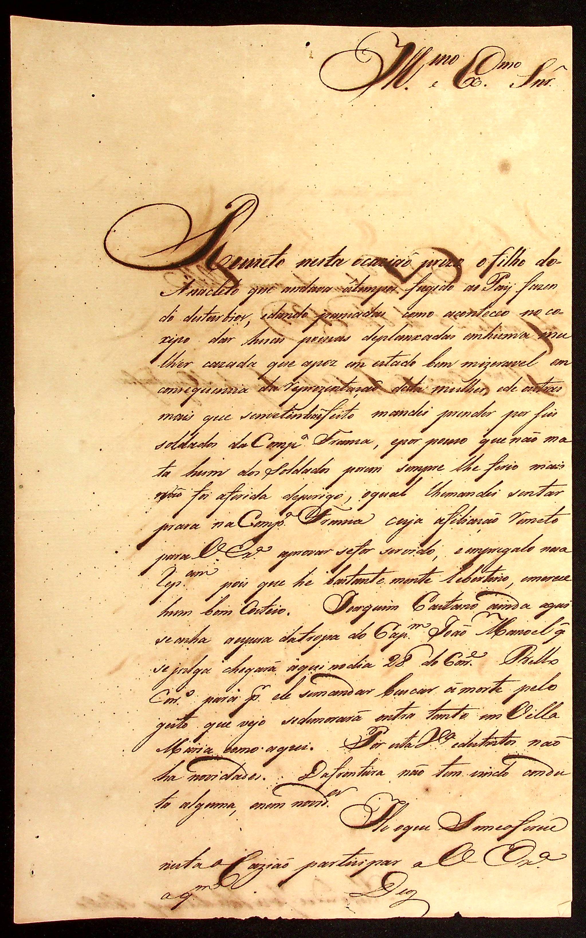 CARTA [Tenente-Coronel] Alexandre José Leite Chaves de Melo ao [Governador e Capitão-General da Capitania de Mato Grosso] João Carlos Augusto d’Oeynhausen e Gravenberg.
